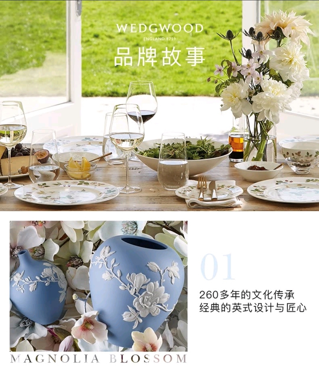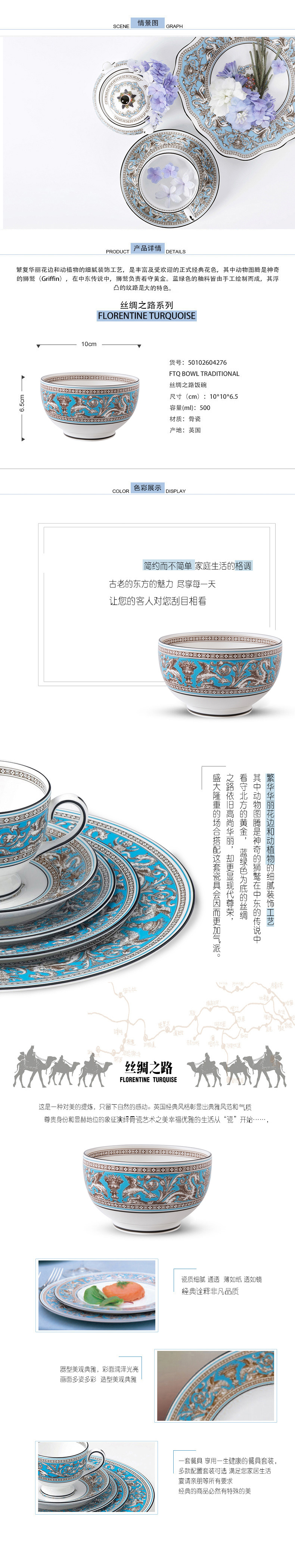 英国威基伍德 WEDGWOOD 玮致活丝绸之路10cm传统骨瓷饭碗礼盒装