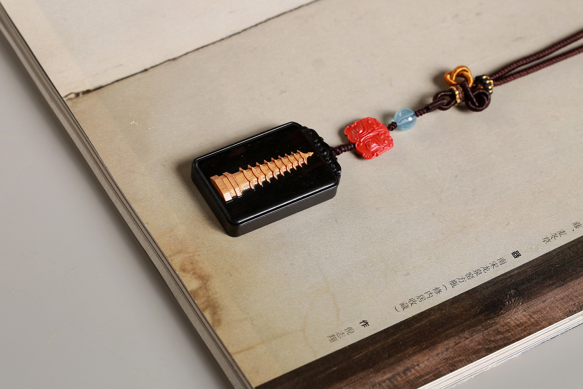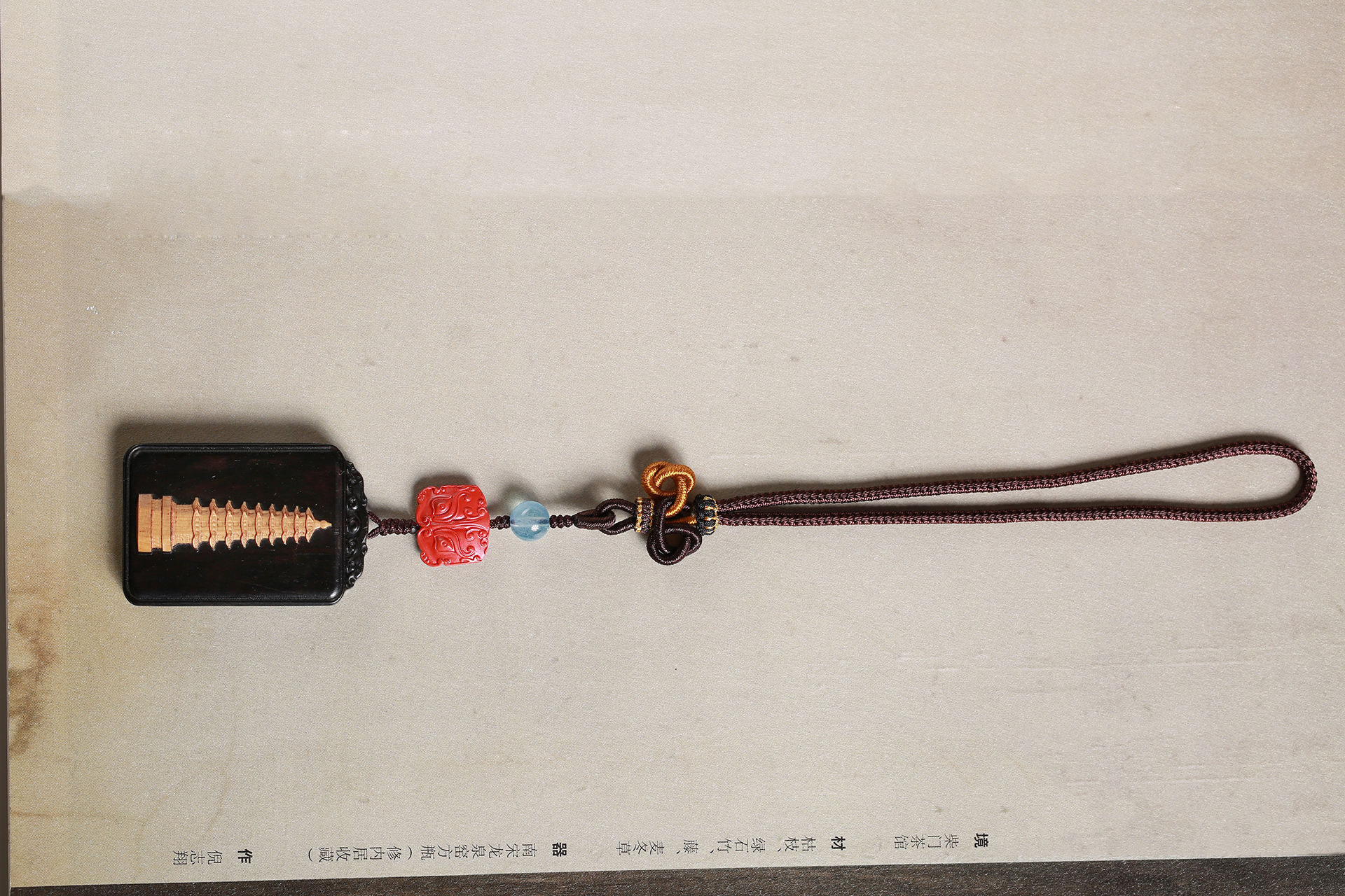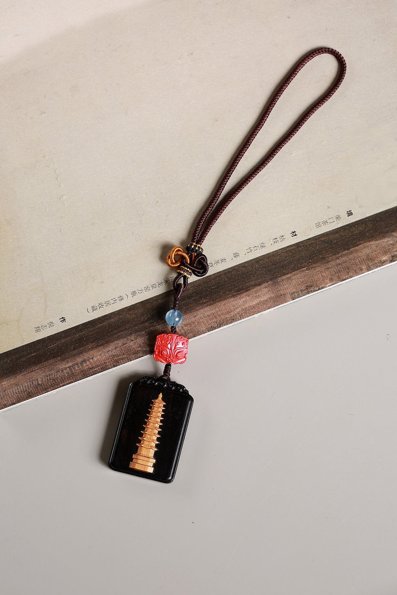 紫光檀镶黄杨木(文昌塔)/朱砂/琉璃(蓝)