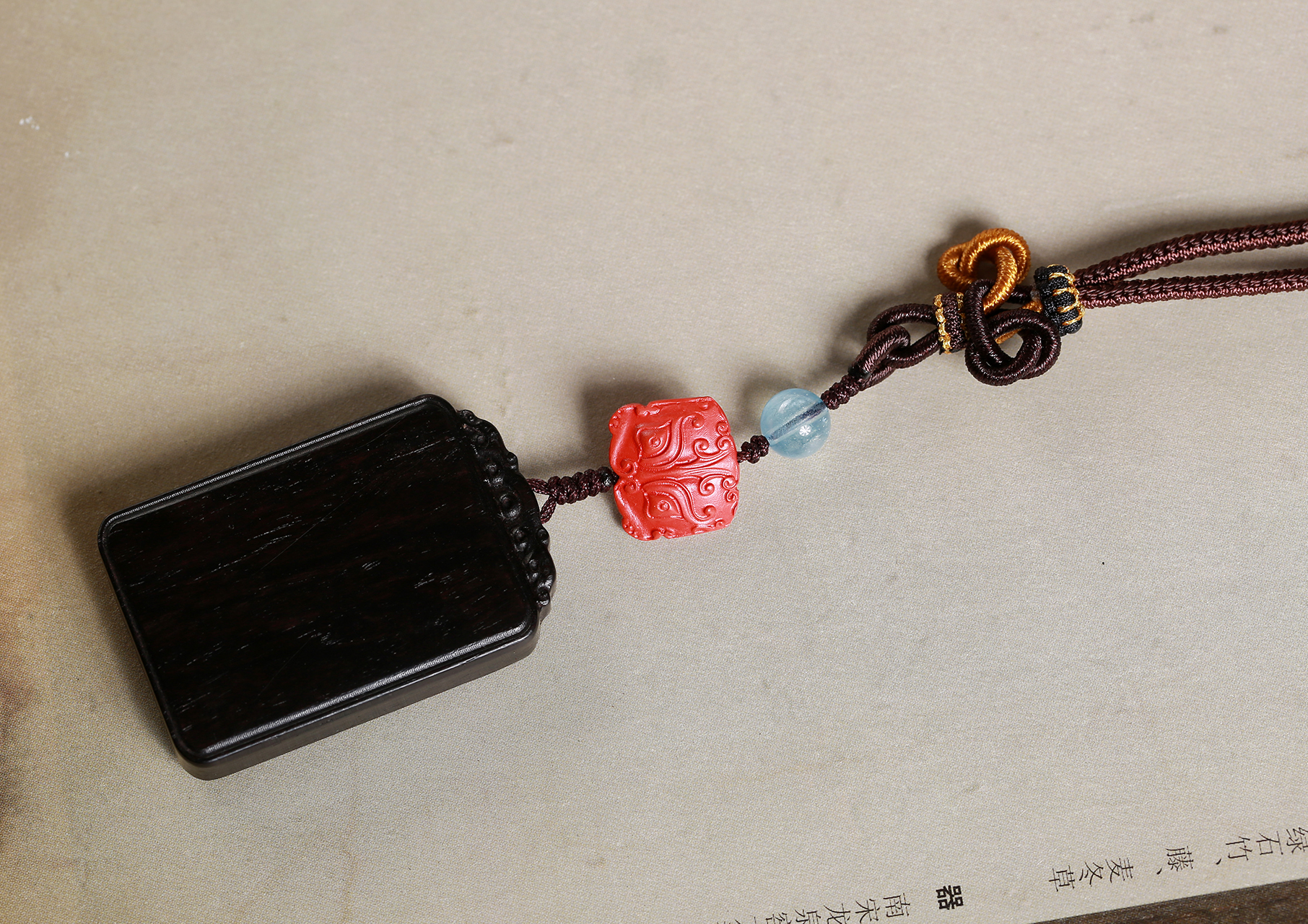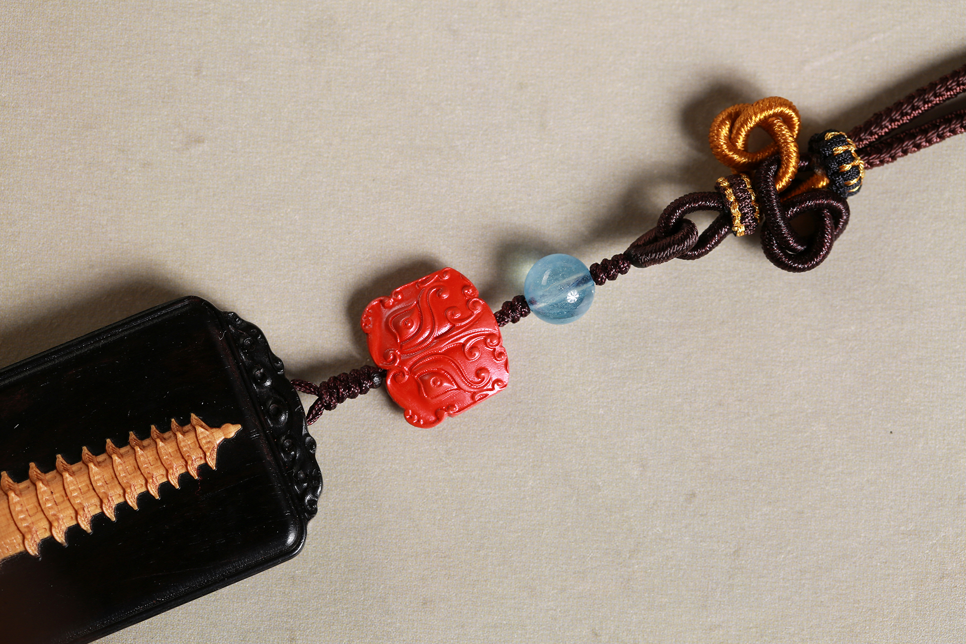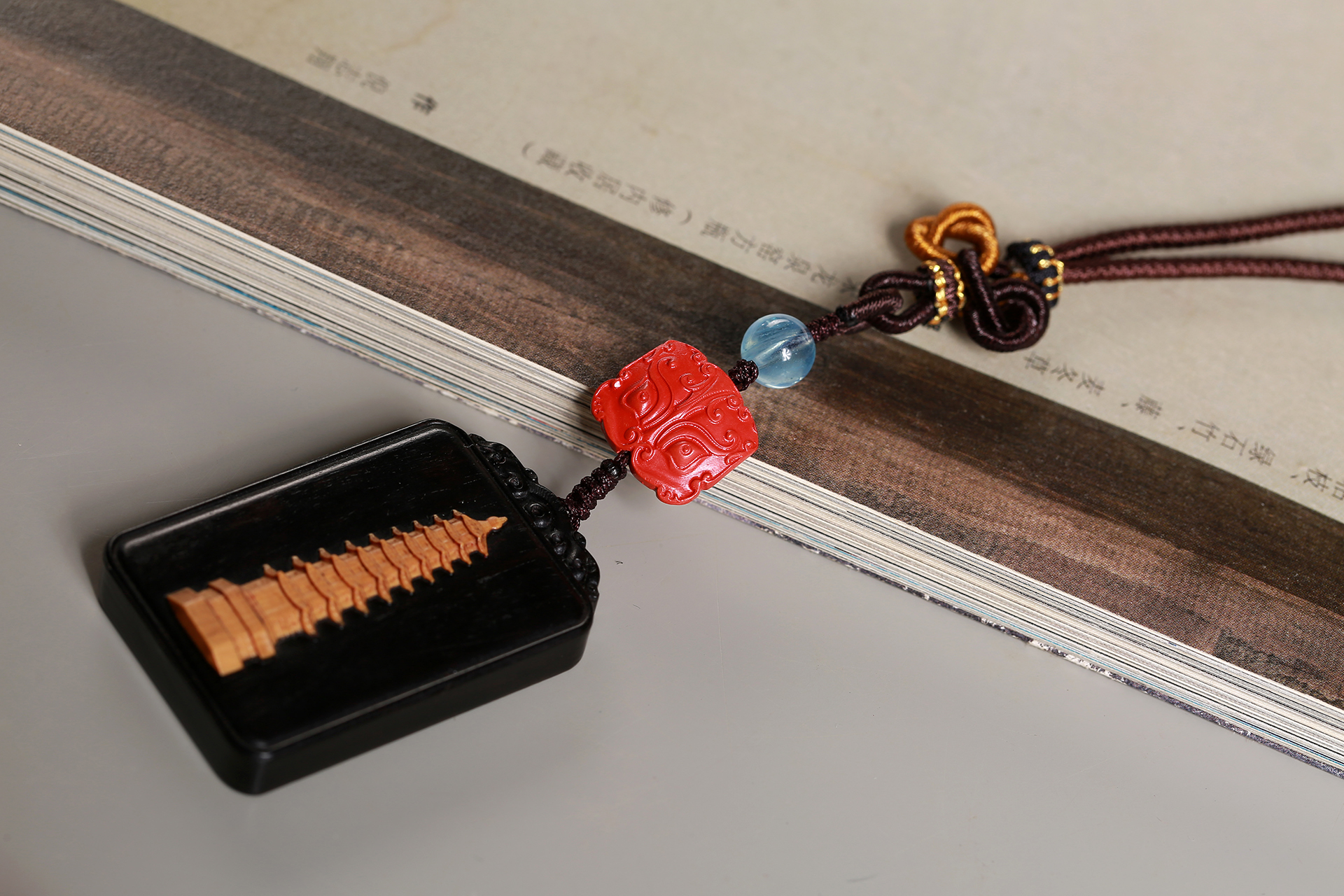 紫光檀镶黄杨木(文昌塔)/朱砂/琉璃(蓝)