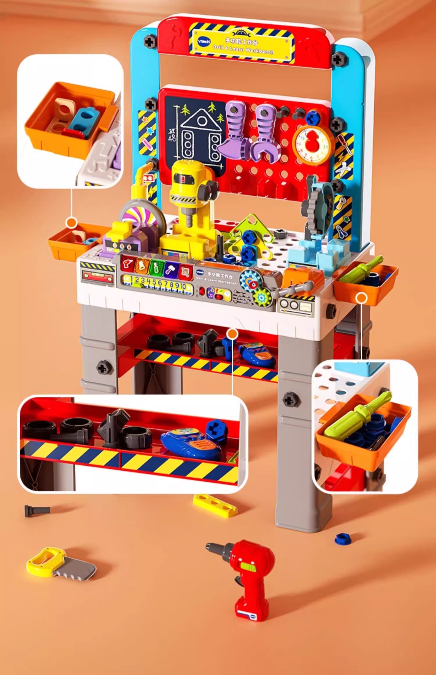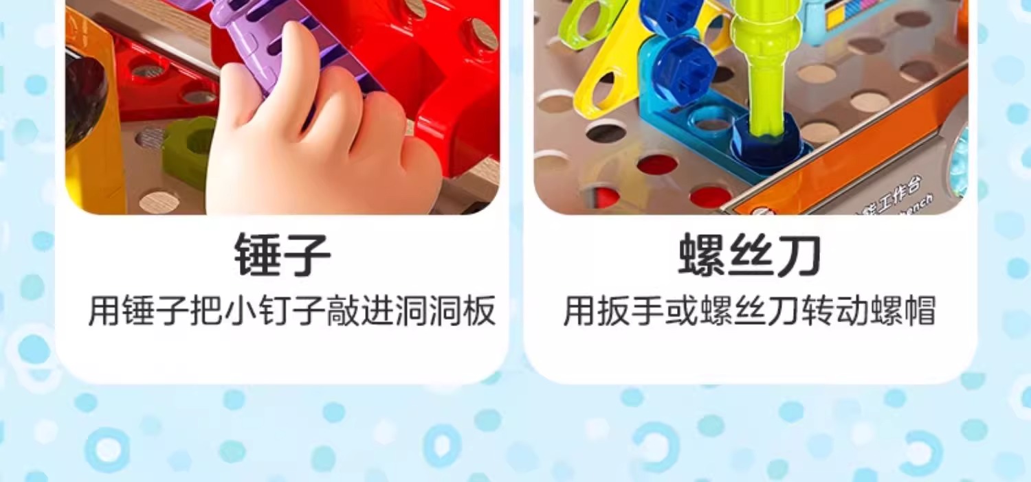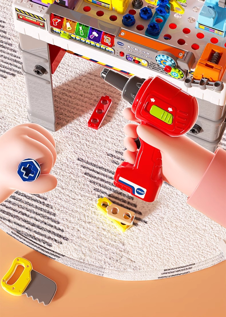 伟易达仿真多功能工作台山姆同款工具箱维修拧螺丝双语创意拼搭电动玩具