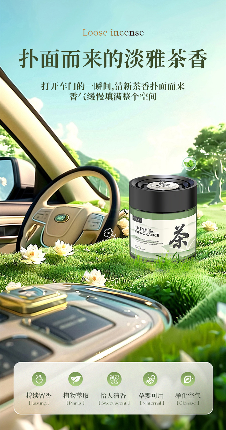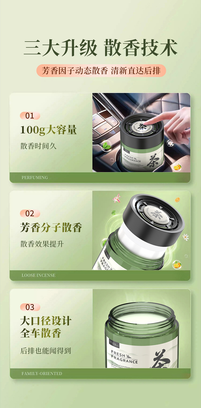 「3款香型!新茶香」车载香薰茶香汽车玻璃香薰摆件固体香膏汽车装饰香氛留香
