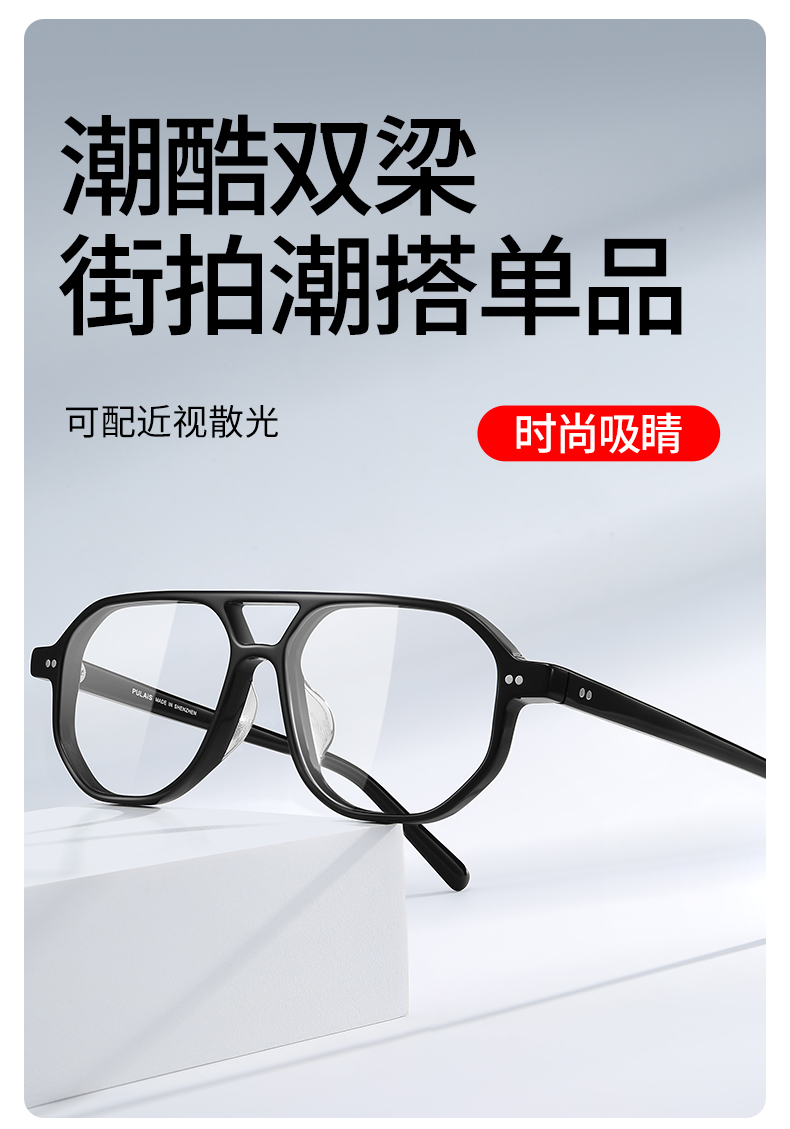 普莱斯光学镜框PB8179 超酷双梁 质感板材材质 不挑脸型 男女同款 四色可选