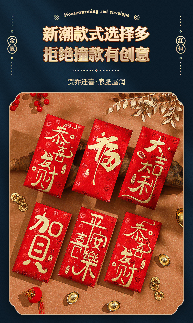 「7.9元包邮!6个装」2024年龙年新年红包 过年春节压岁钱个性创意利是封家居饰品通用红包袋