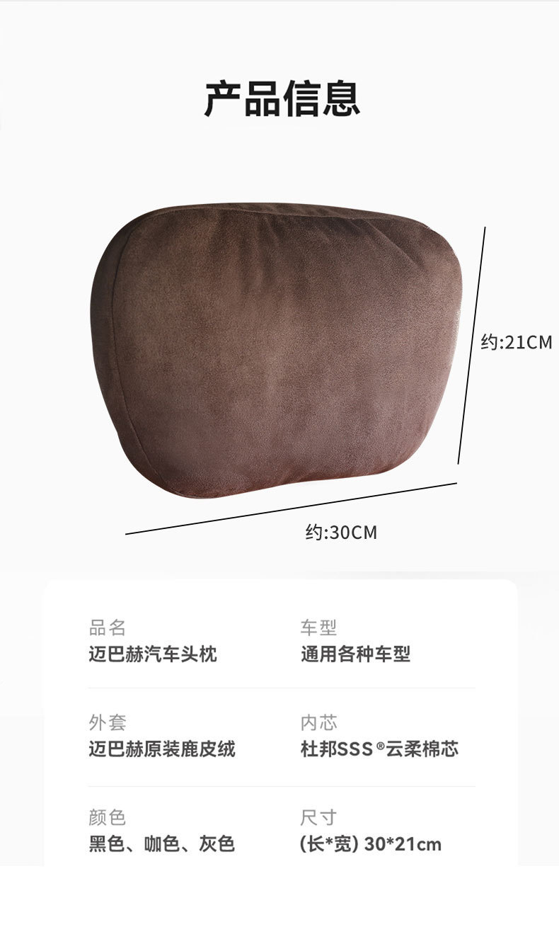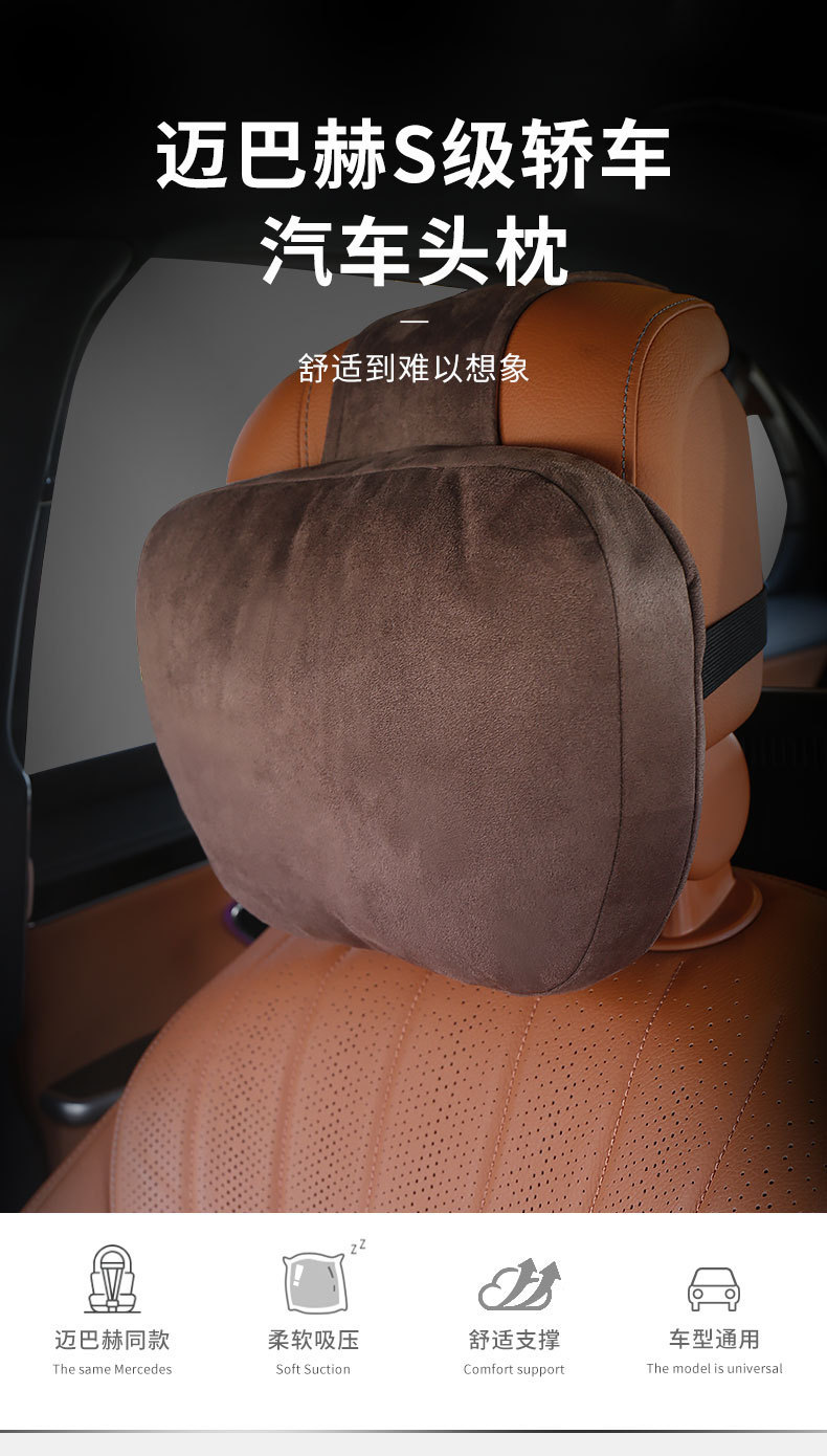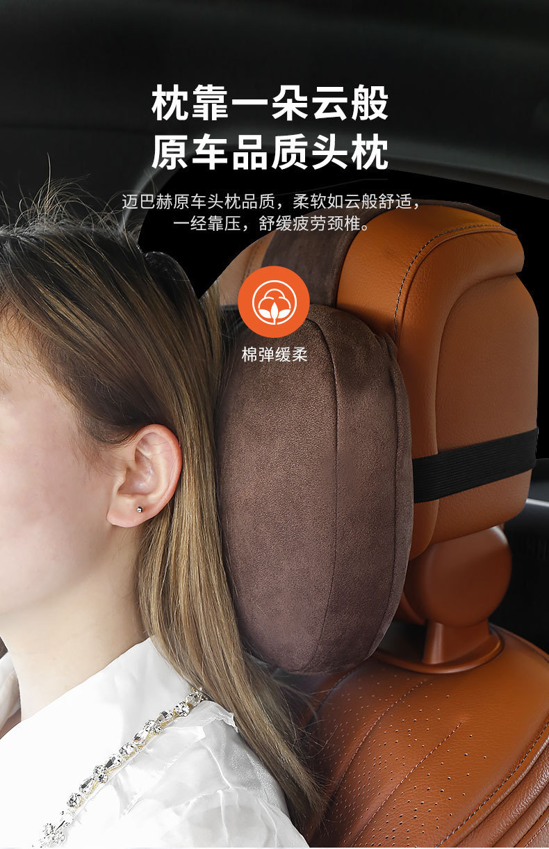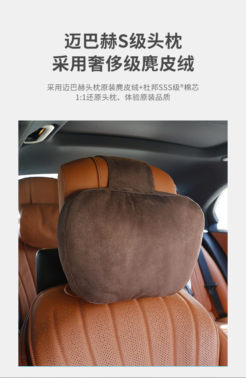 「迈巴赫同款!麂皮绒头枕」汽车车载头枕车内四季通用护颈头枕车上防螨座椅靠枕装饰