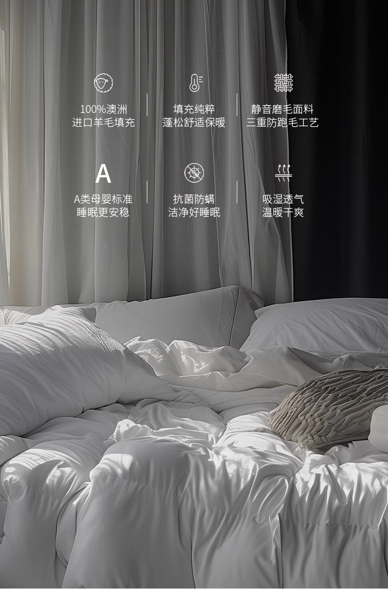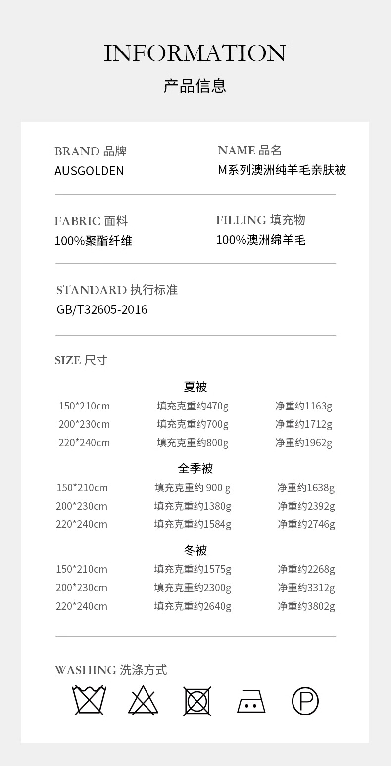 Ausgolden澳洲进口羊毛被100纯羊毛四季通用单人被子冬天加厚保暖