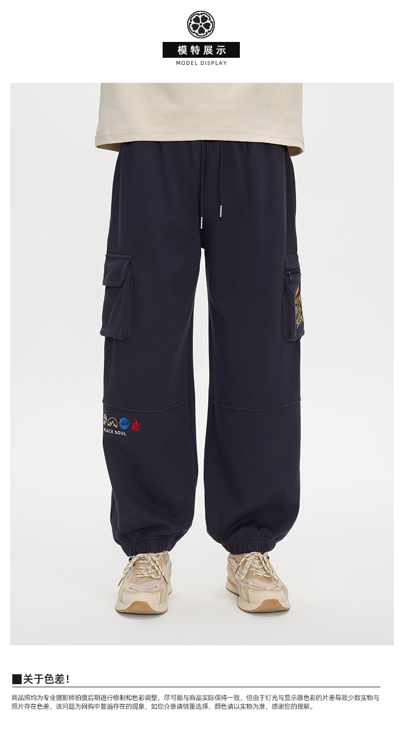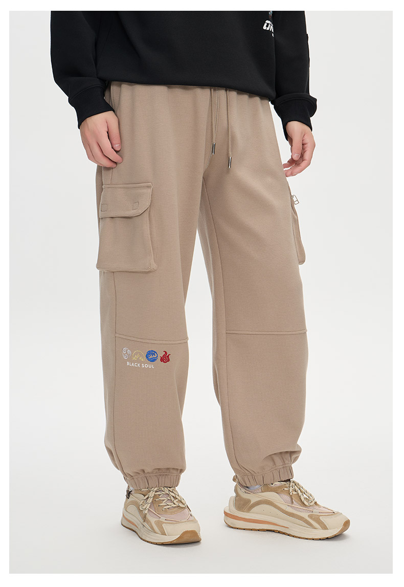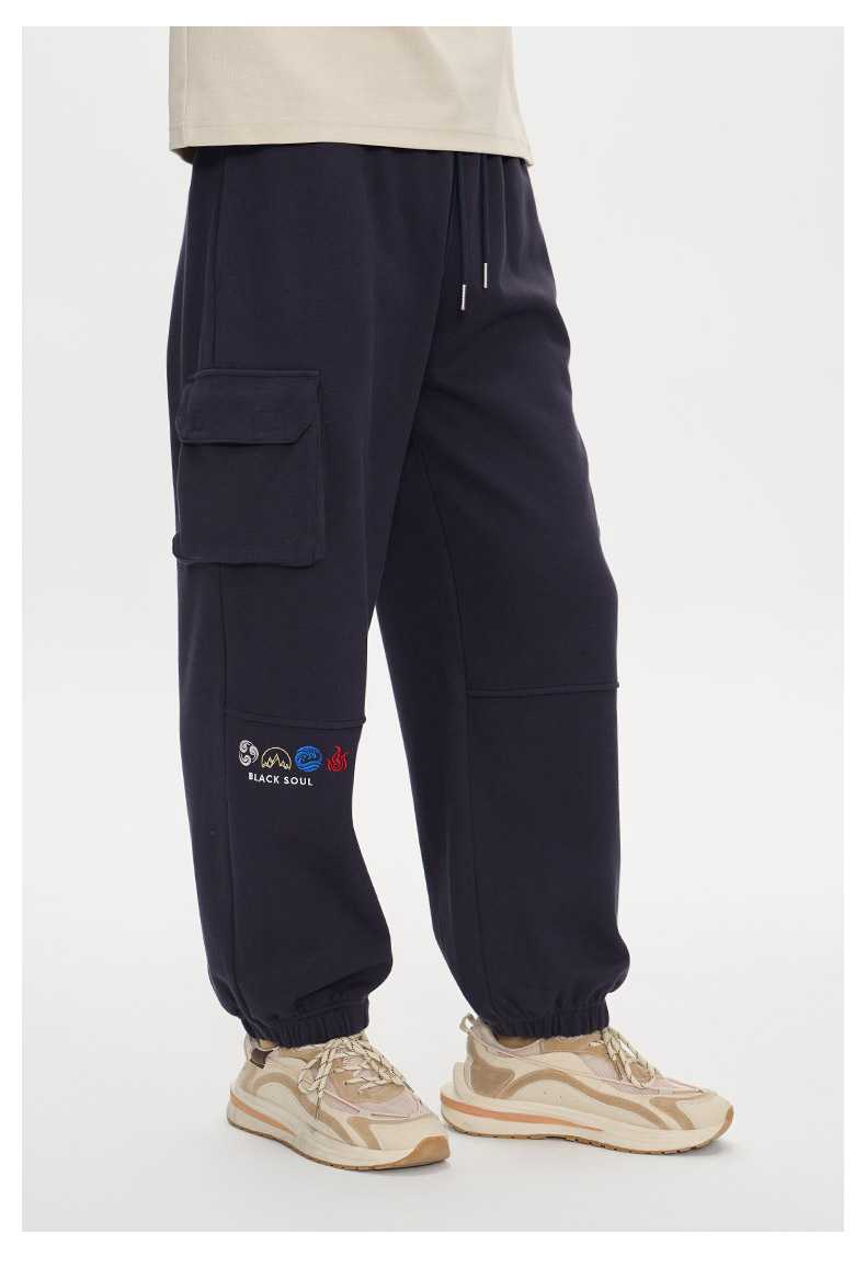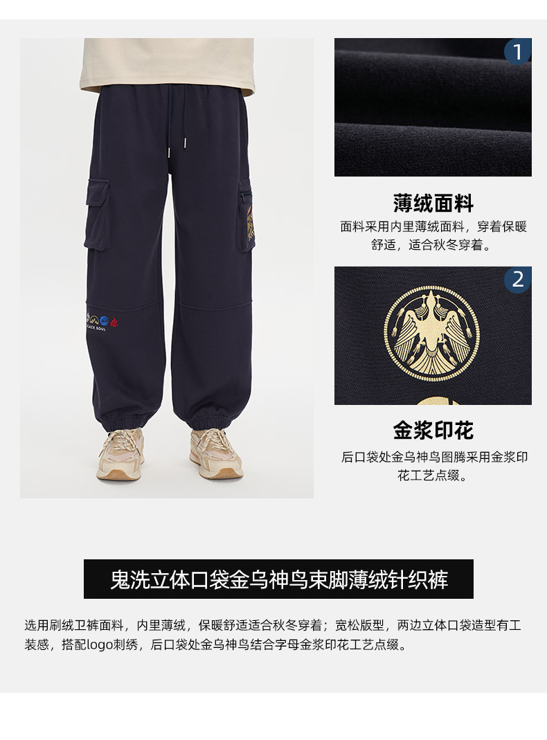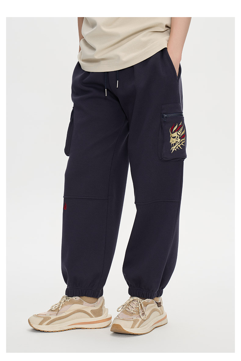 ONIARAI/鬼洗25秋冬新立体口袋金乌神鸟束脚薄绒针织裤男 B540173
