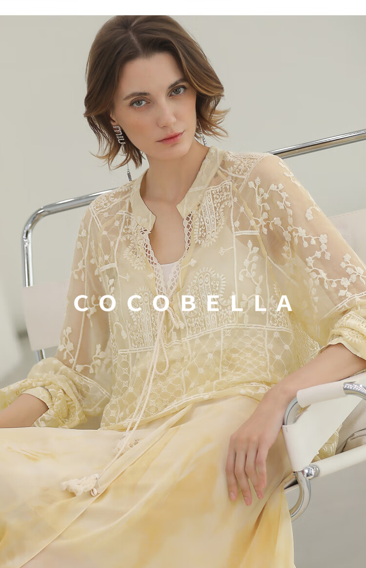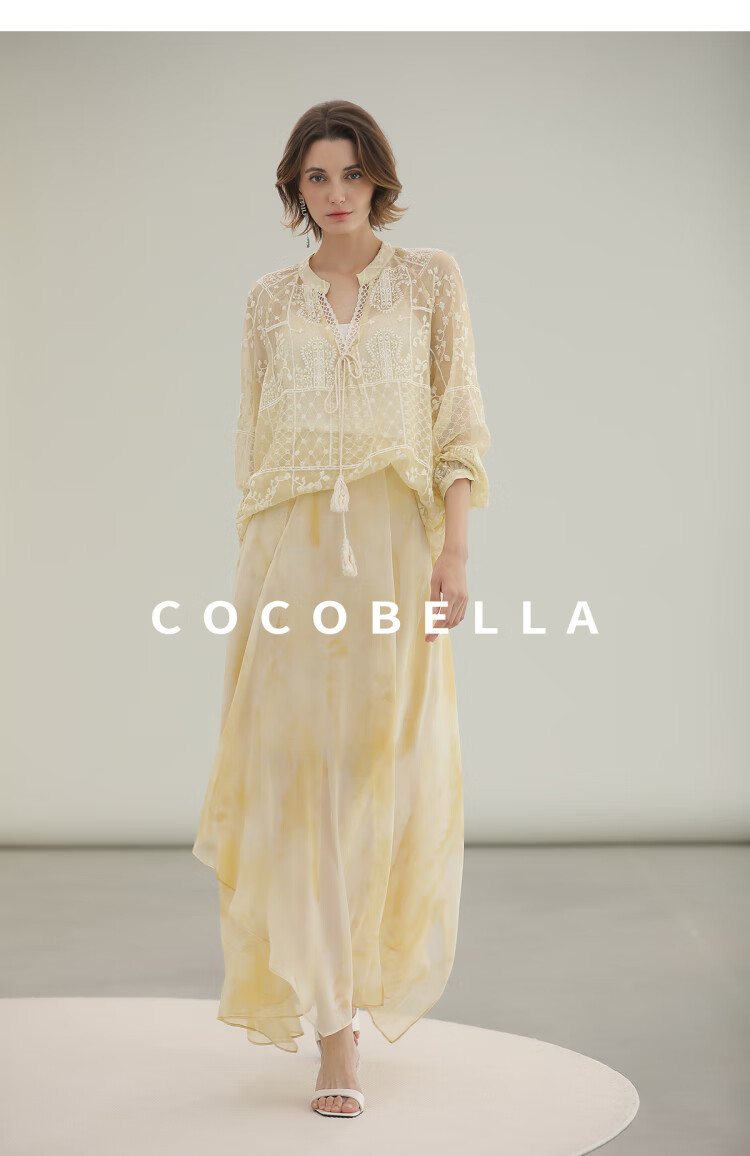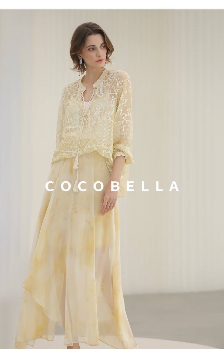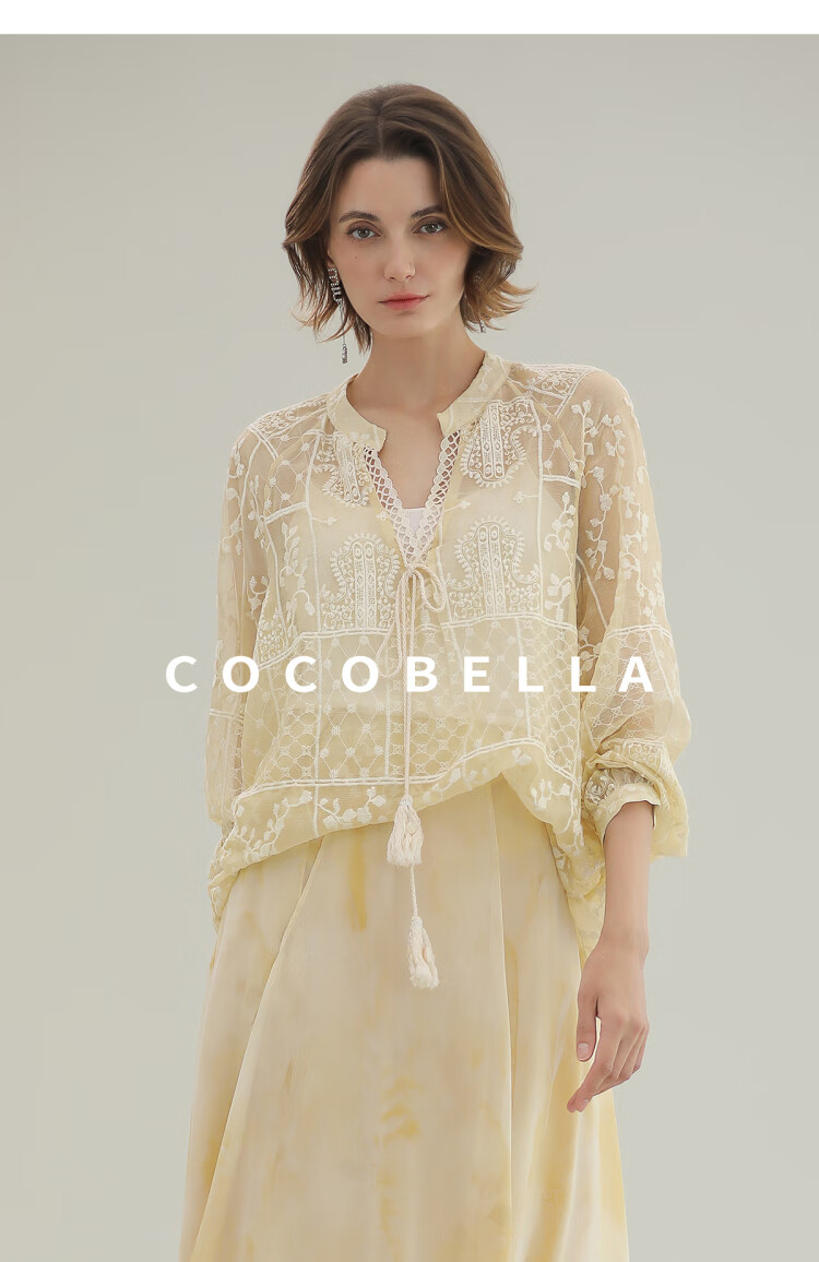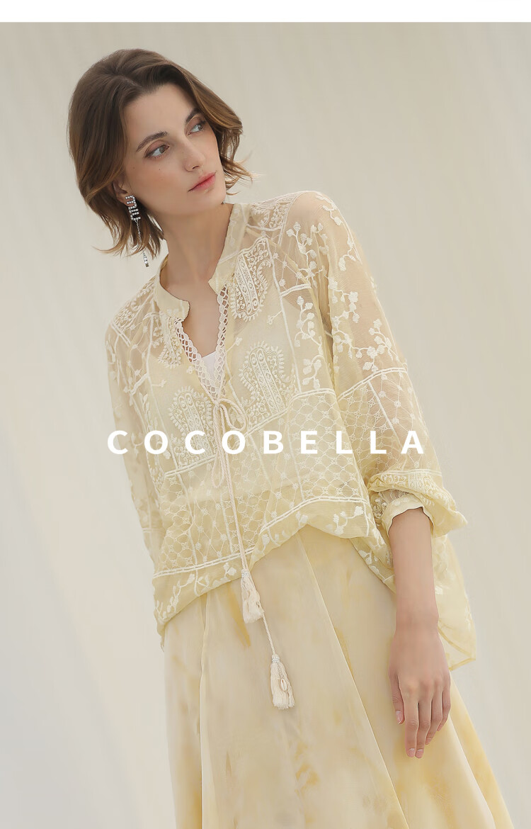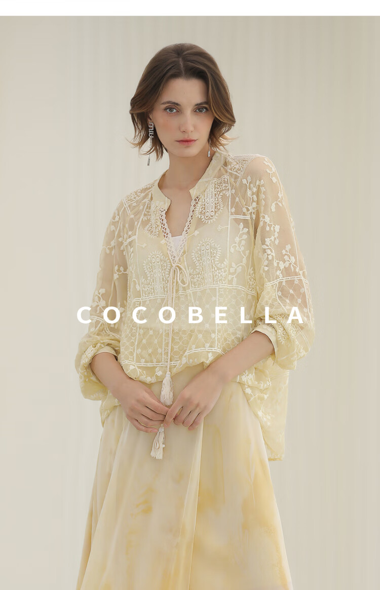 COCOBELLA万针刺绣炒色衬衫女微透视流苏上衣吊带套装SR0075
