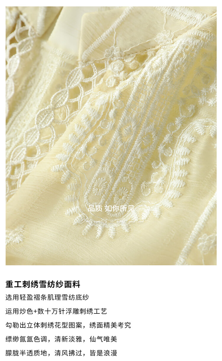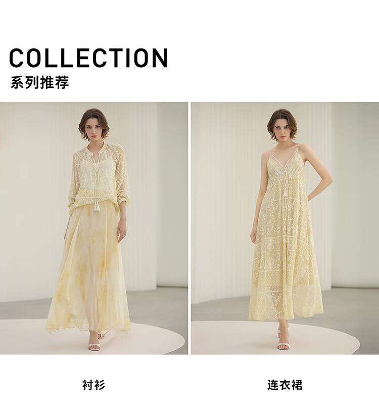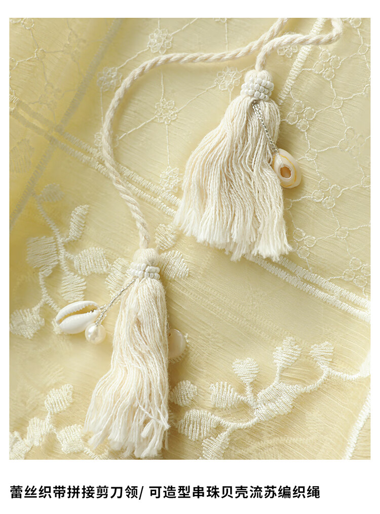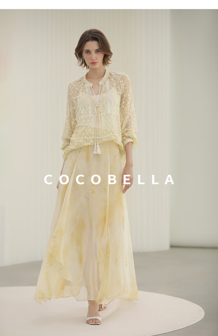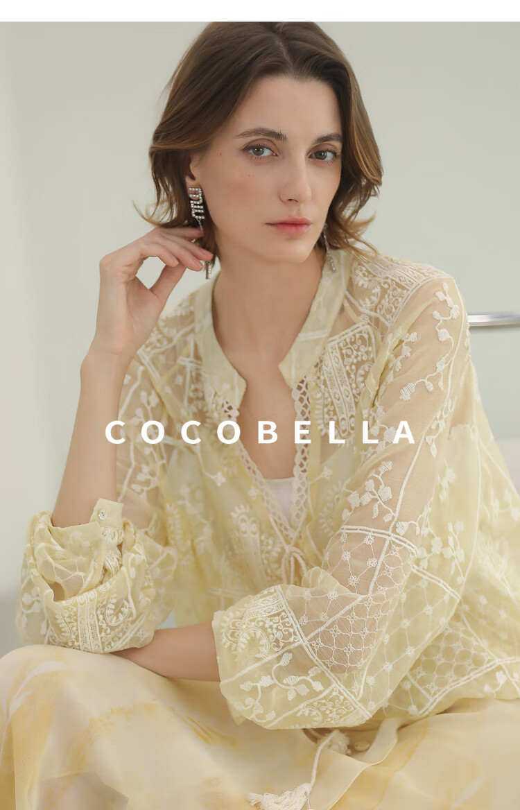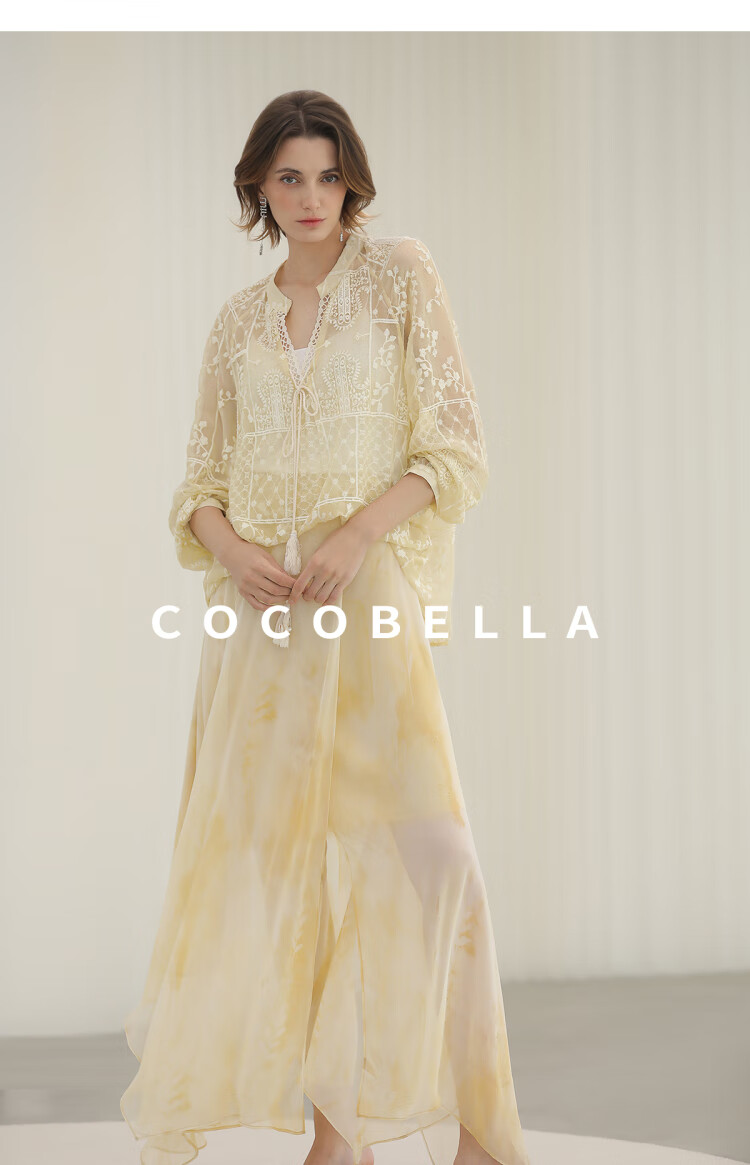 COCOBELLA万针刺绣炒色衬衫女微透视流苏上衣吊带套装SR0075