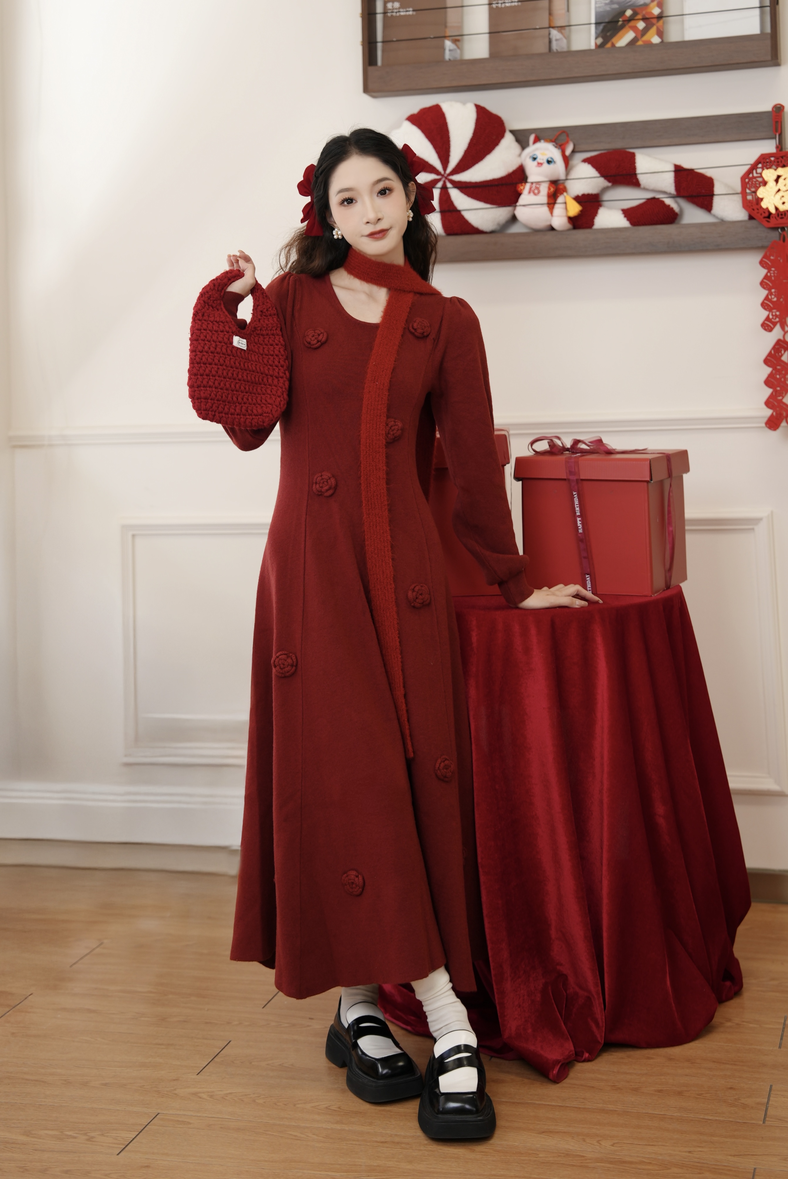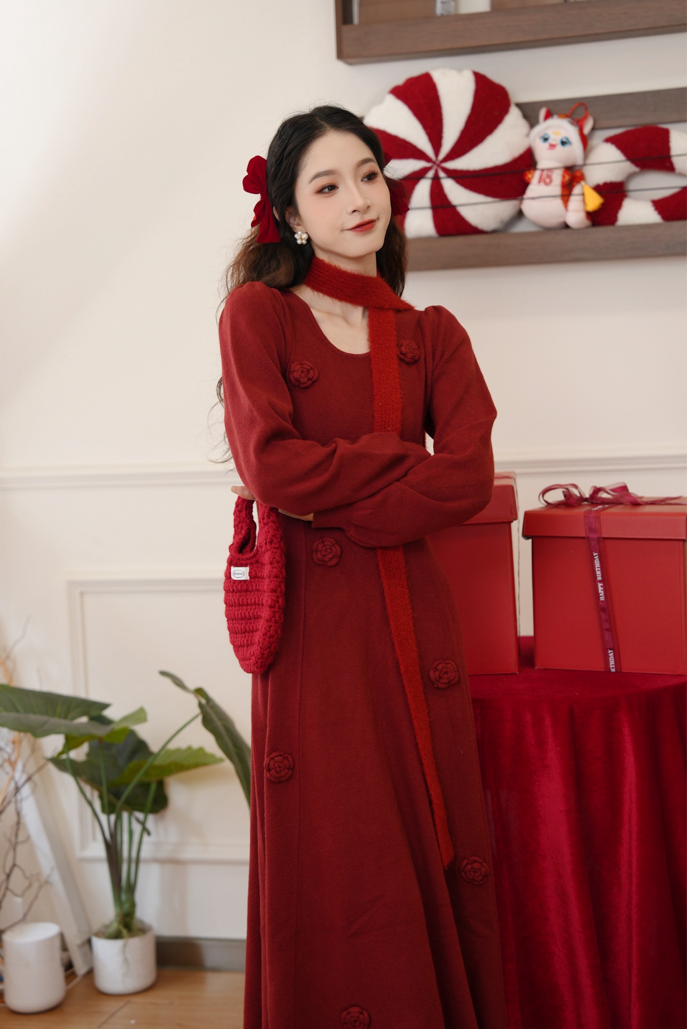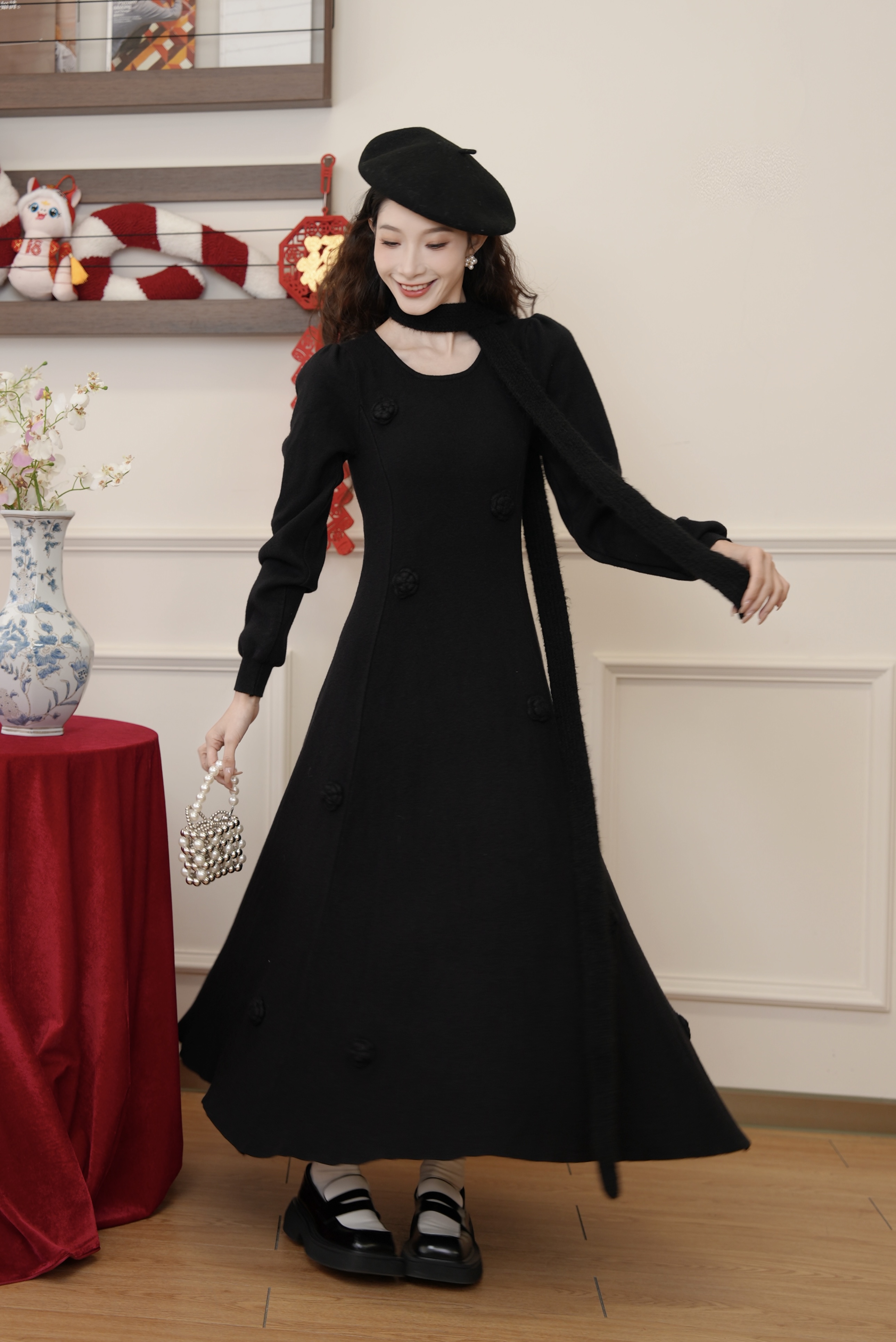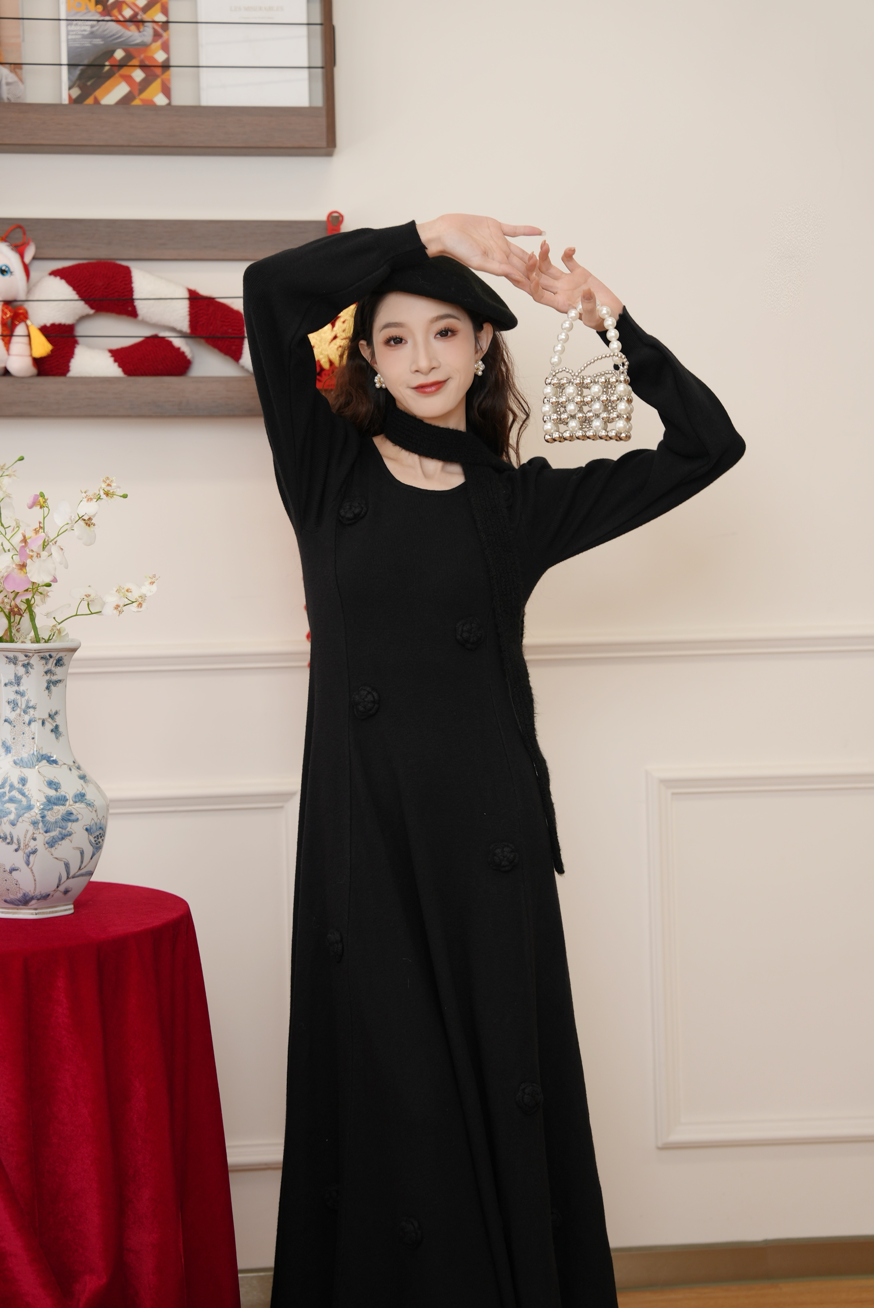 两三事红拂暮色打底连衣裙女配显瘦遮肚连衣裙长袖显瘦秋辣妹穿搭