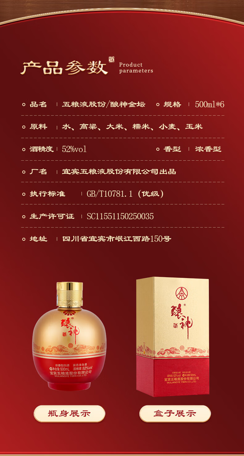 【超五粮液1618工艺】五粮液·酿神 龙凤呈祥(金坛)明初古窖泥·地穴式发酵 浓香型白酒 52%vol