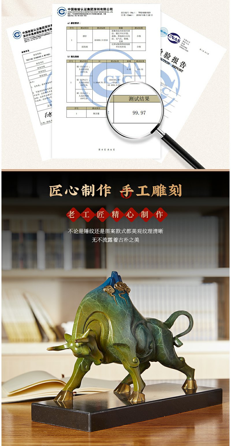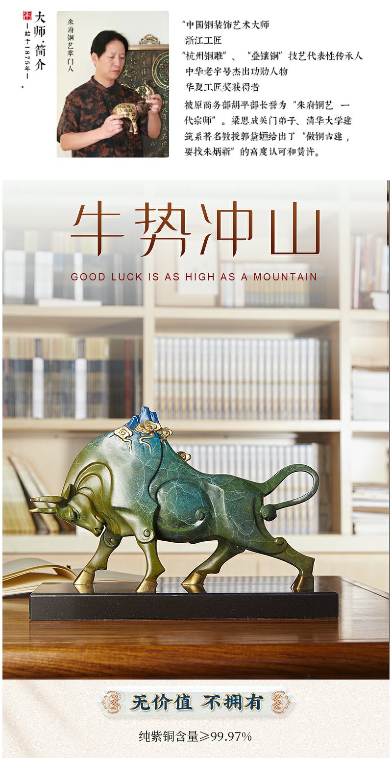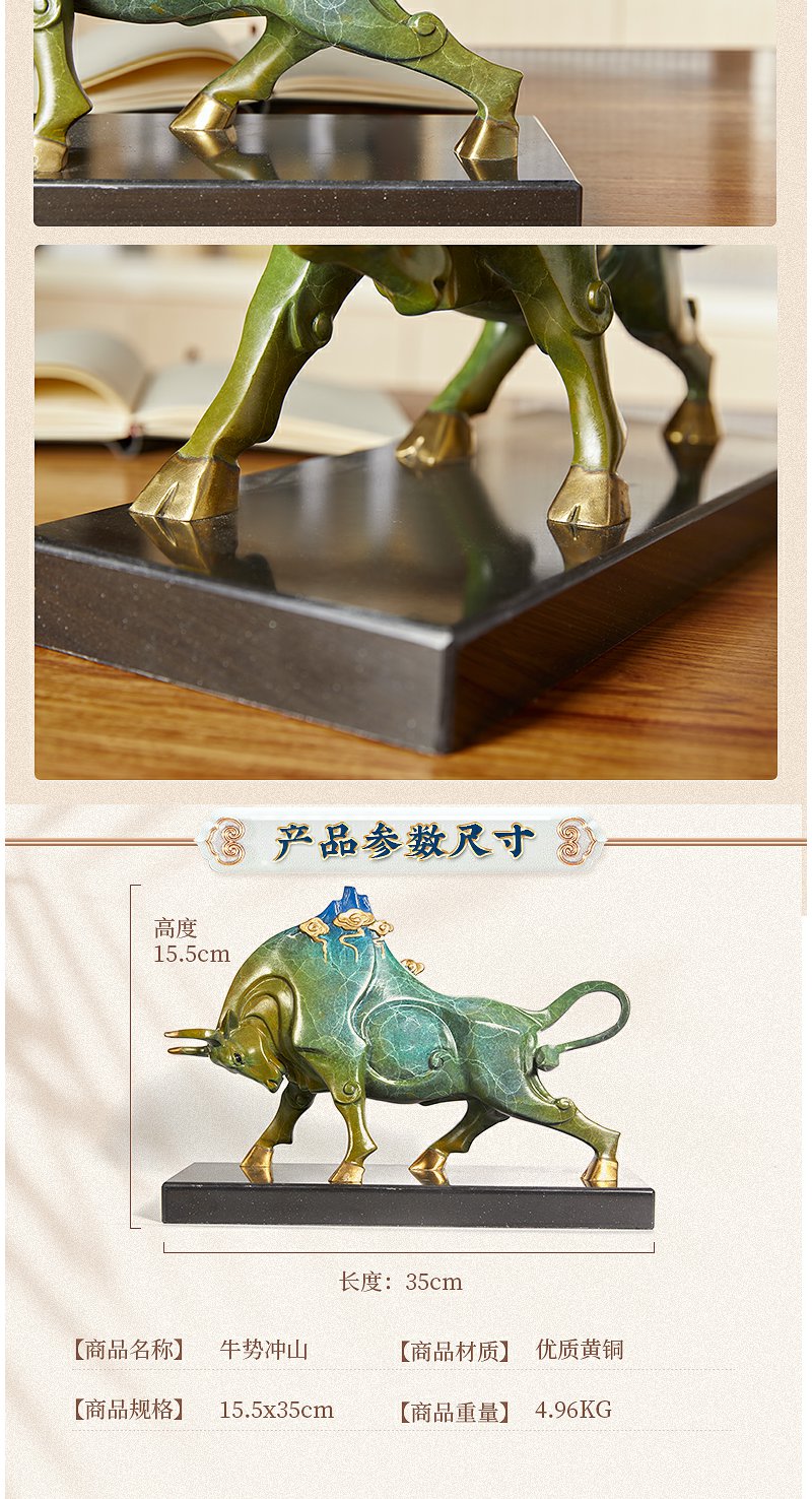 朱府铜艺 牛势冲山铜牛摆件办公室酒柜招财开业礼物中式客厅摆件