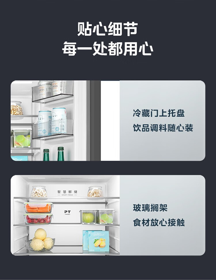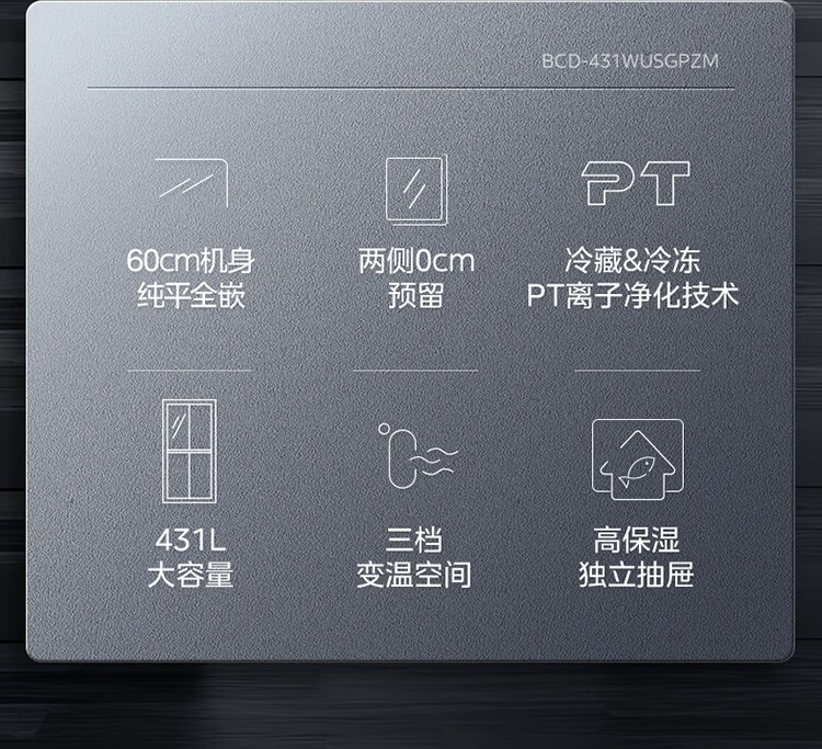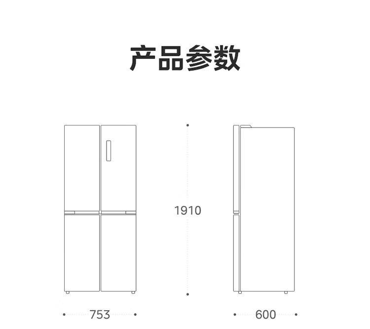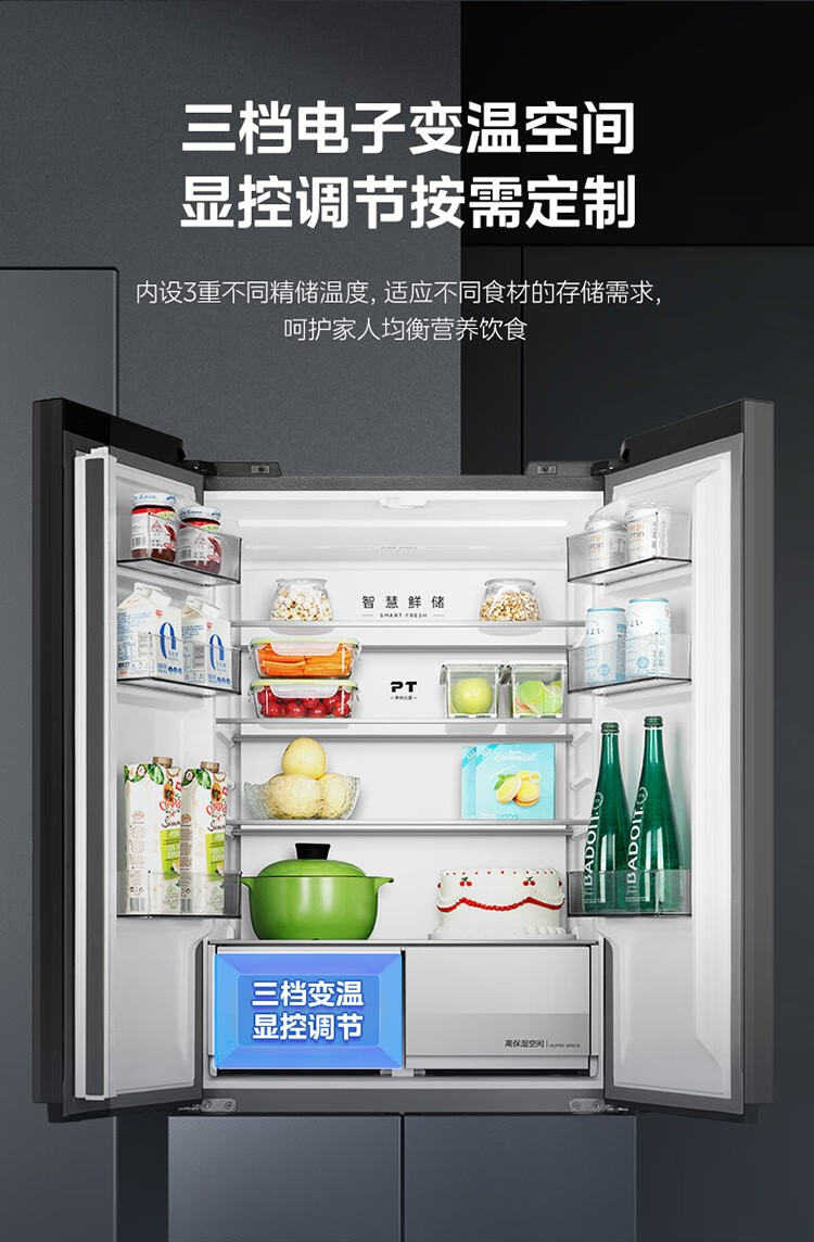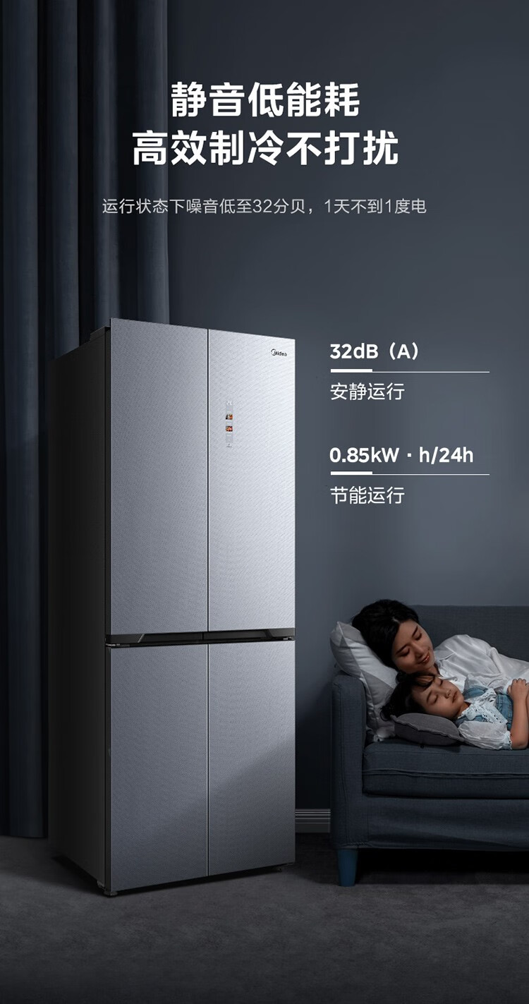 美的十字对开门四门风冷无霜零距离嵌入式一级能效无霜智能家用电冰箱 433升底部散热BCD-433WUSGPZM极地白
