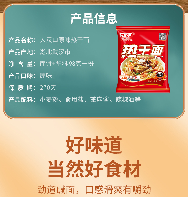 大汉口武汉正宗热干面湖北特产干拌面非油炸速食102g*4包