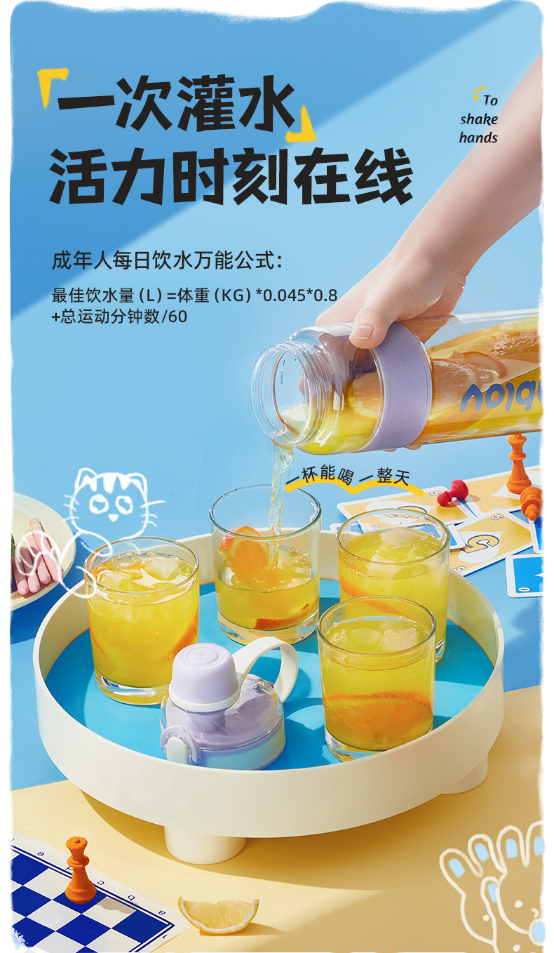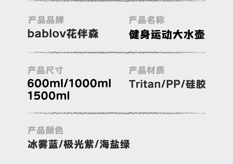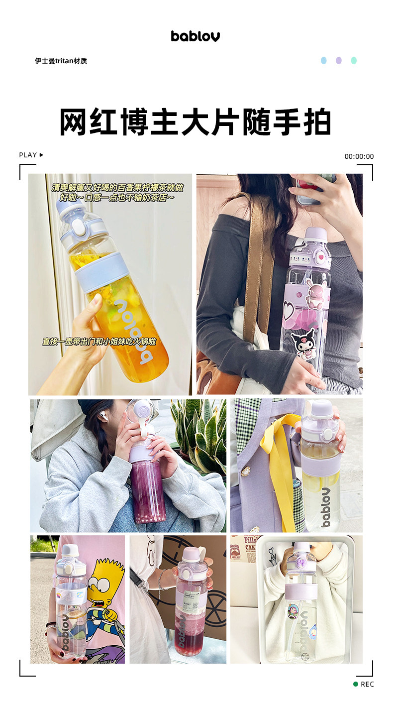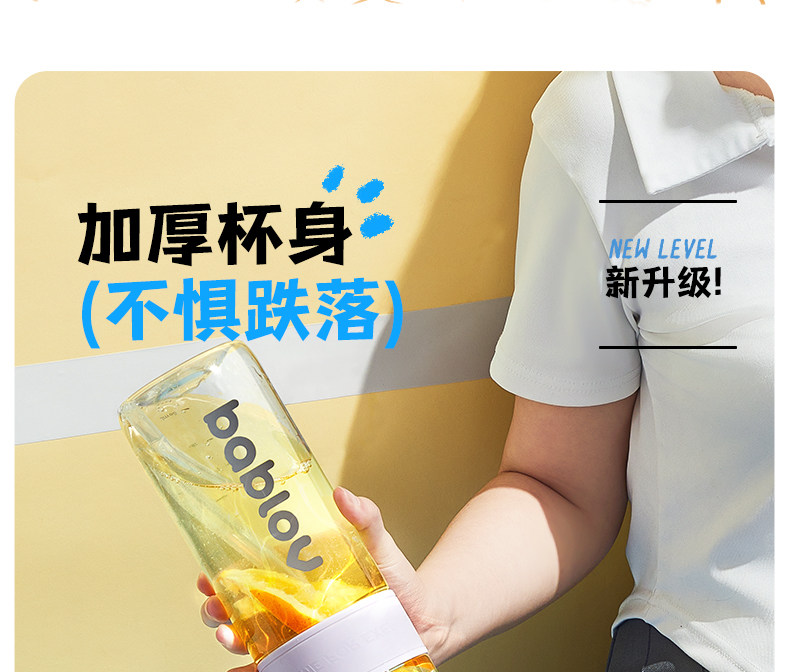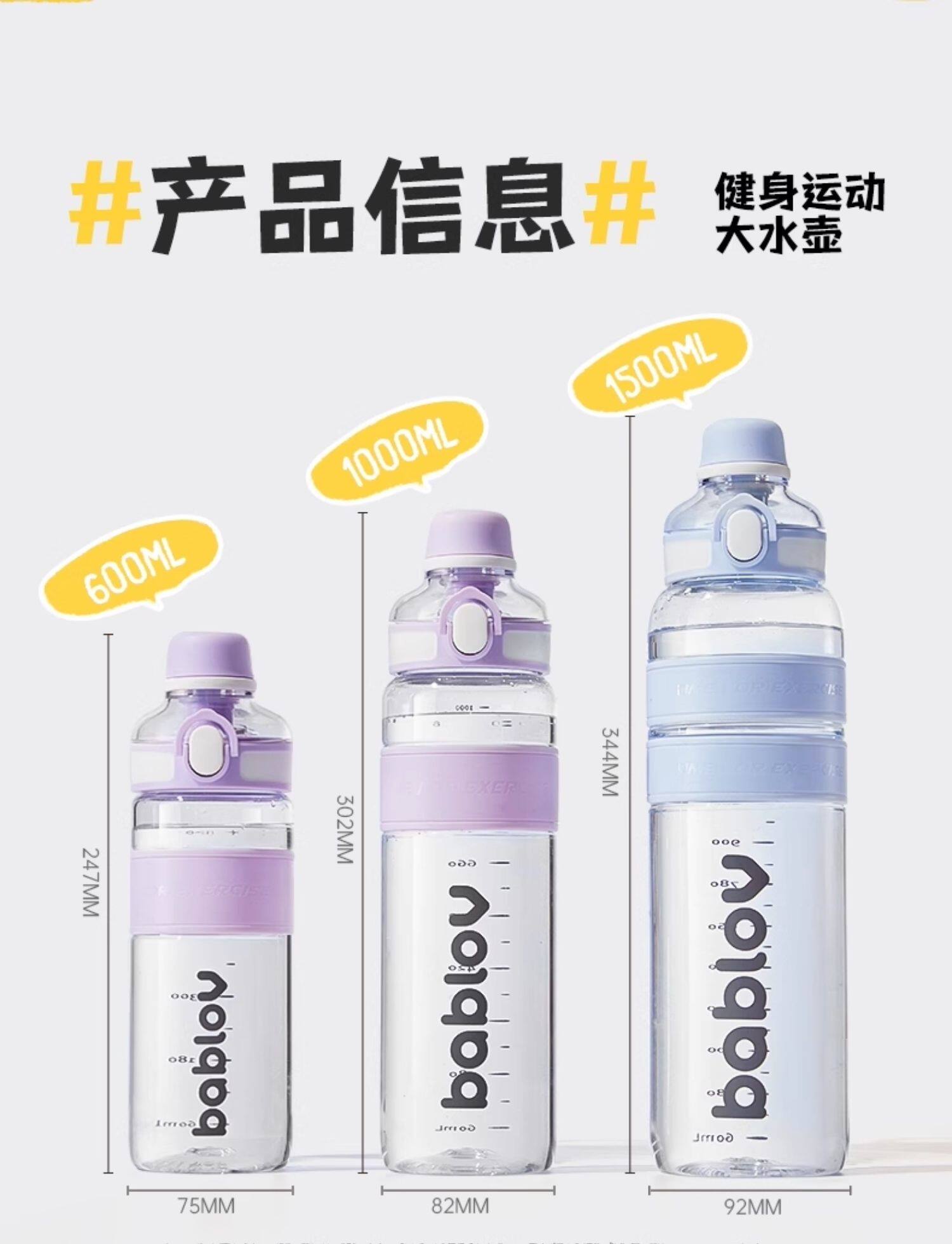 【困妈专享】bablov运动水杯男女生大容量健身水壶防摔户外塑料杯子女便携超大号