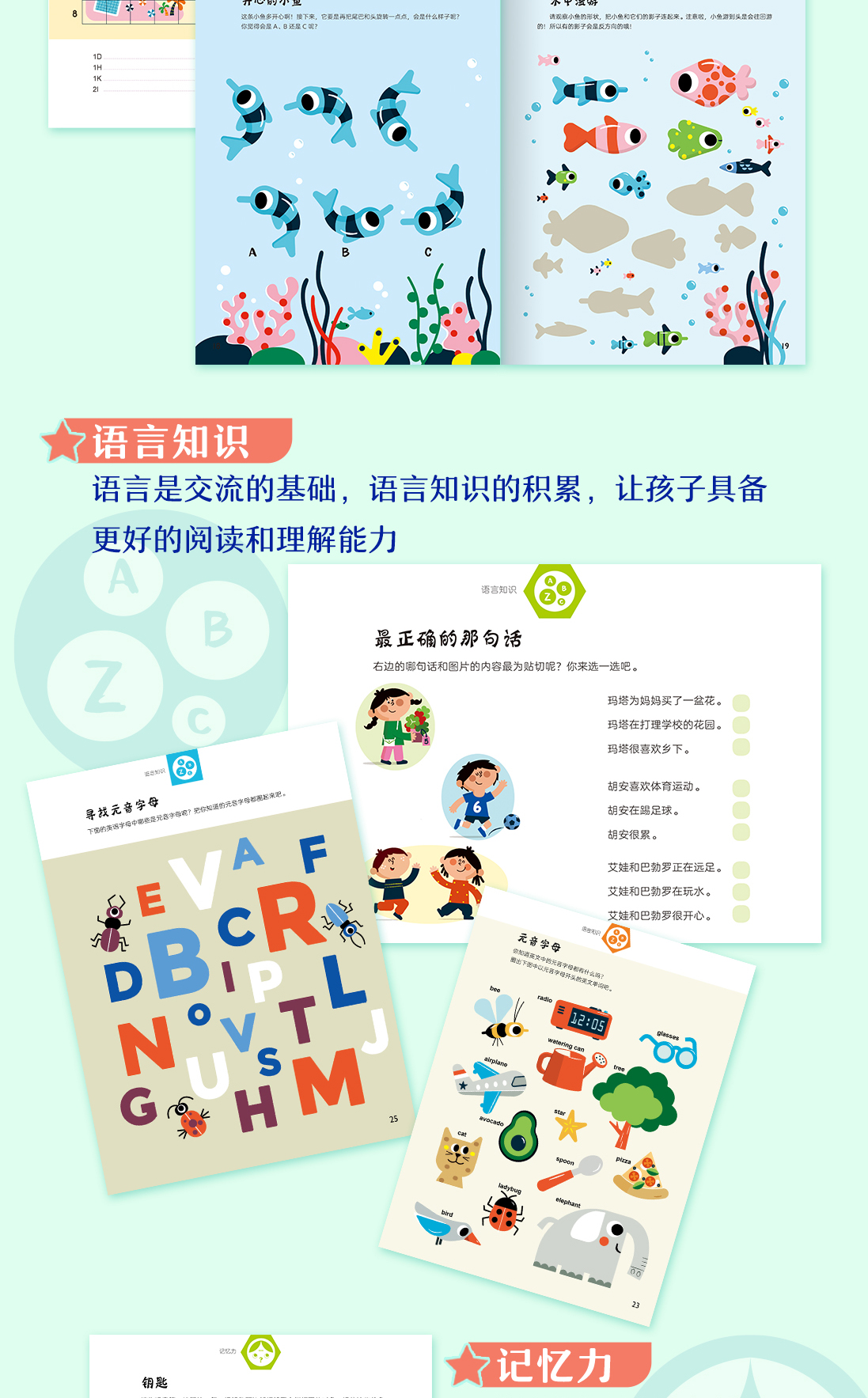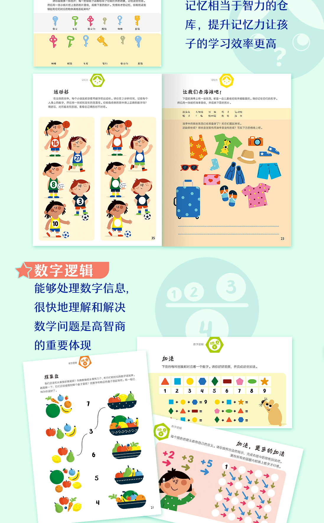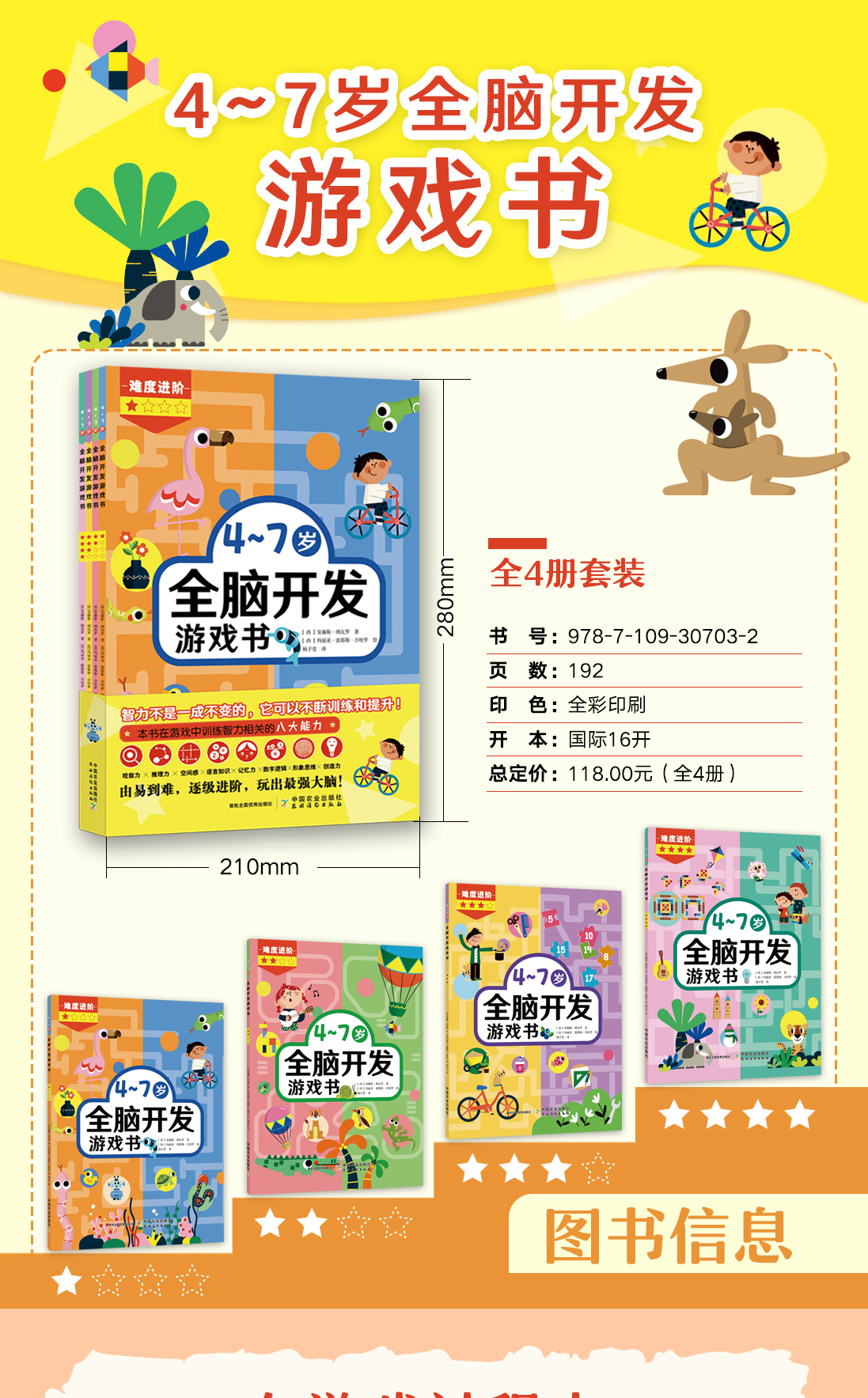 4~7岁全脑开发游戏书(全4册)【观察力、推理力、空间感、语言知识、记忆力、数据逻辑、形象思维、创造力】