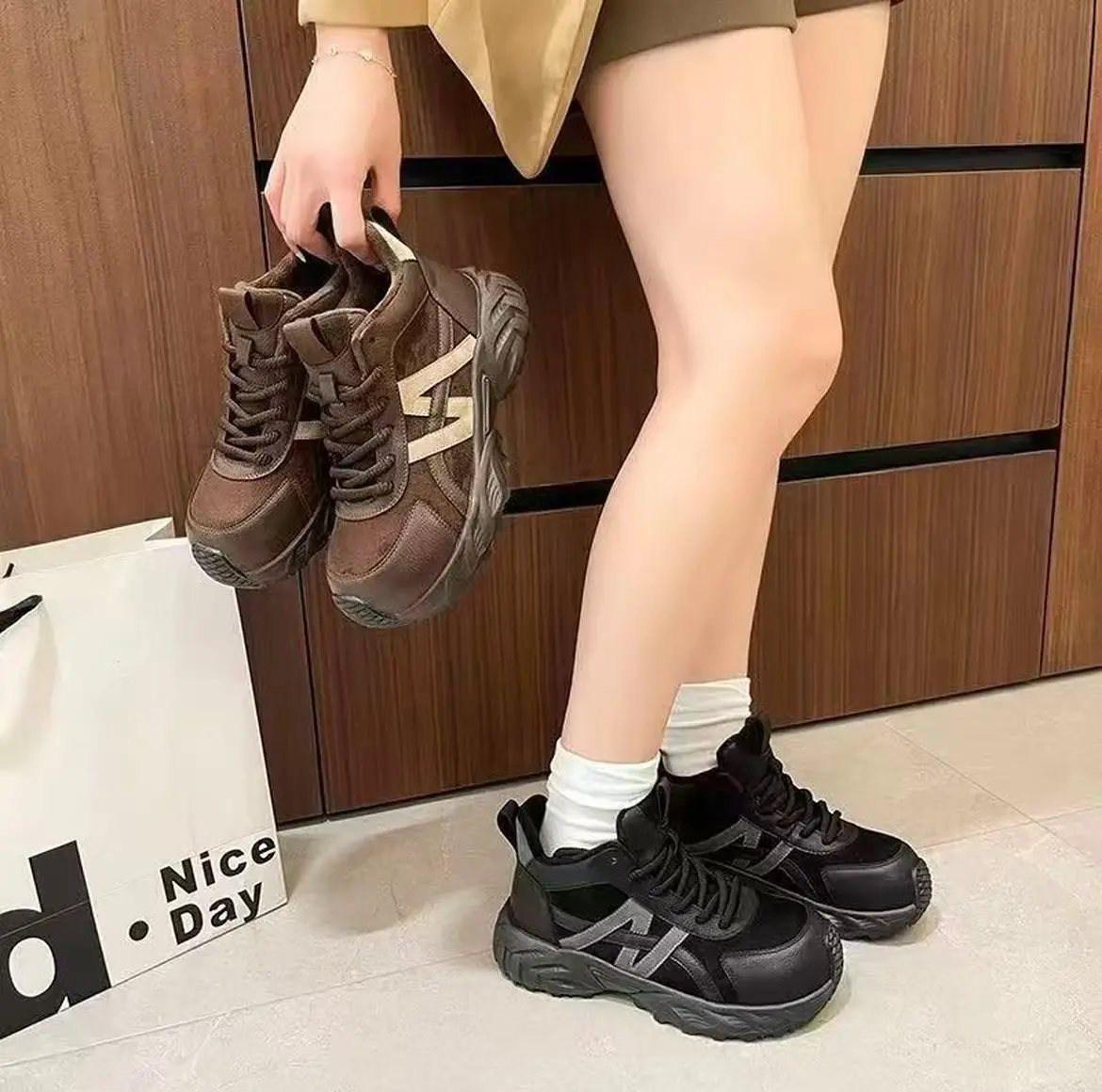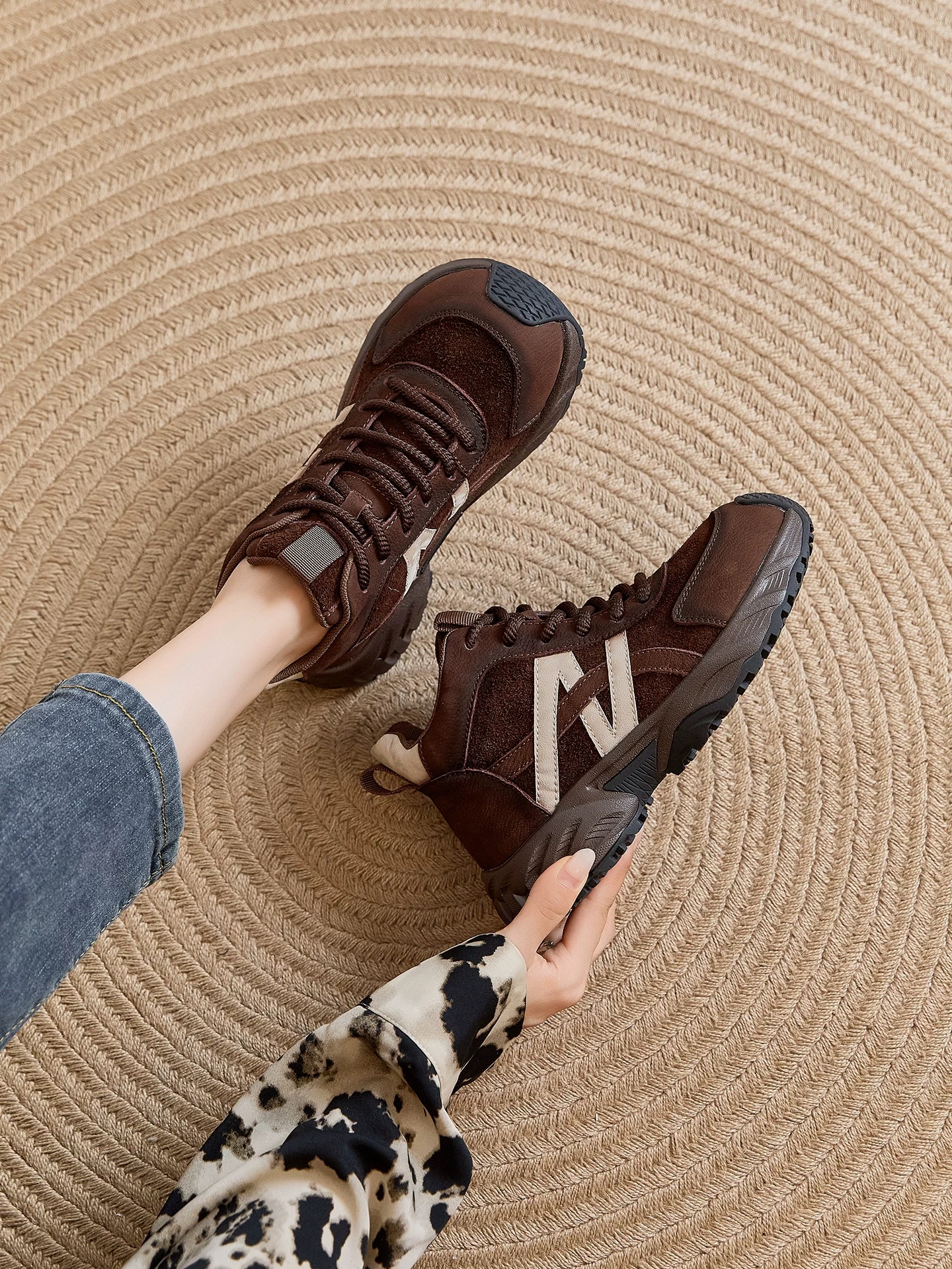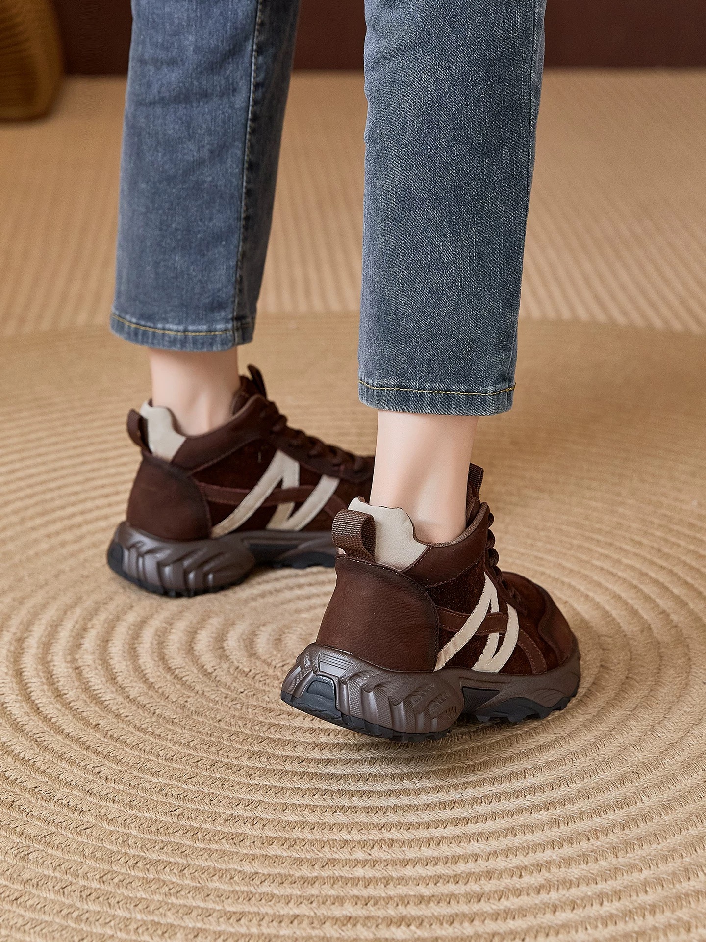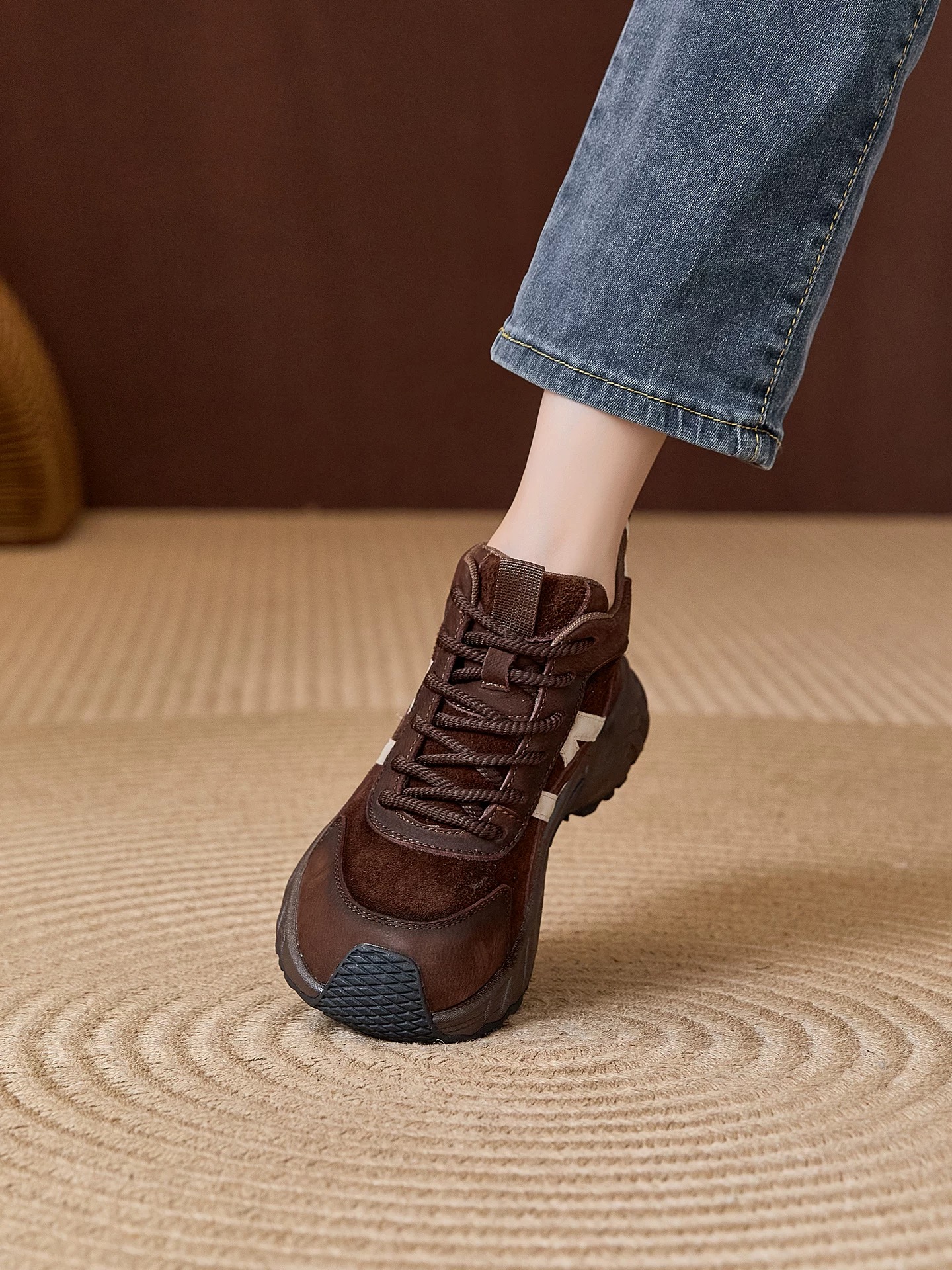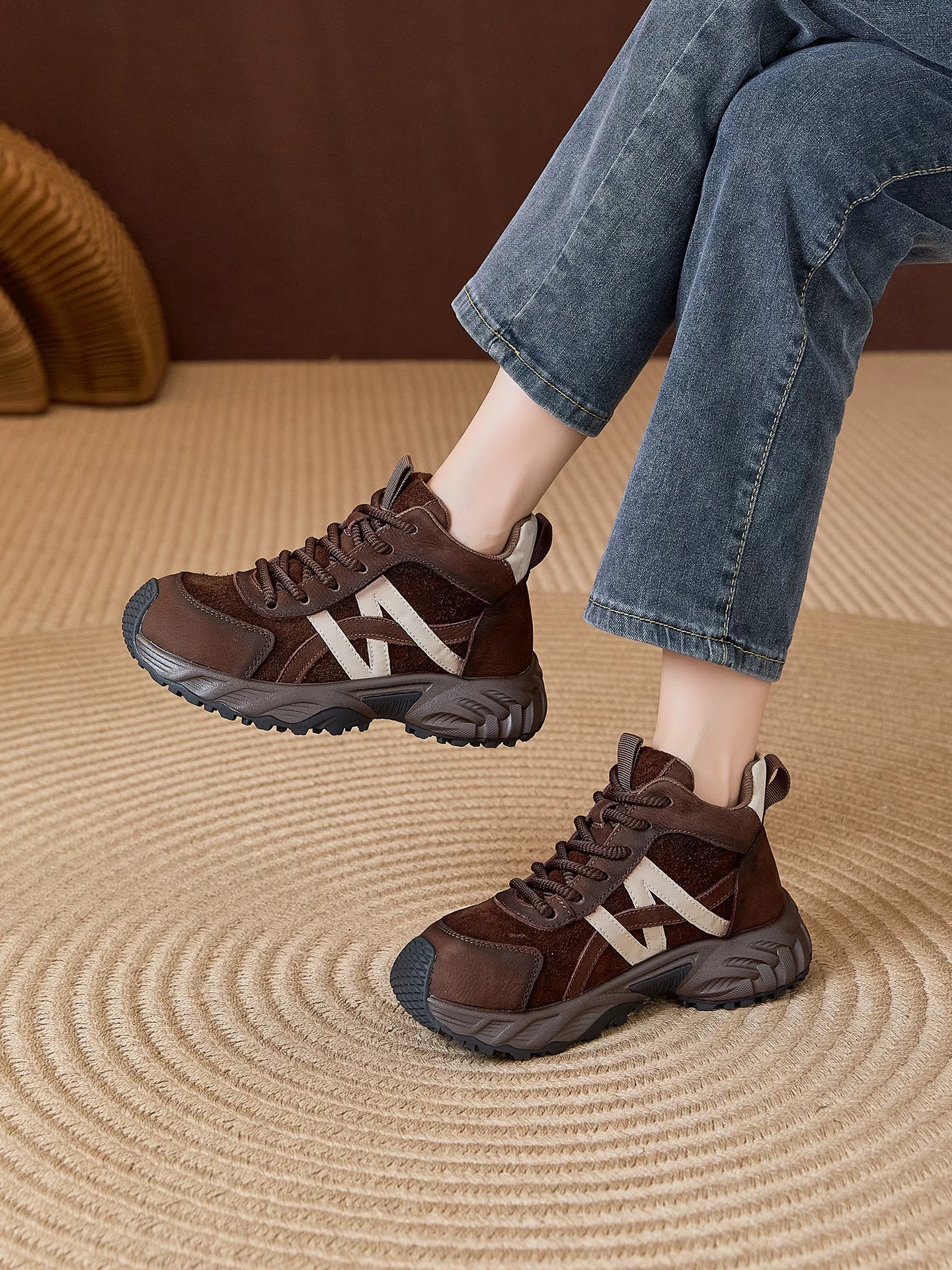 【英国Nudilor厚底复古老爹鞋SS522】✅鞋身反绒皮的拼接设计,复古新潮一手抓 ✅短毛绒内里,锁住热量不冻脚,久走也不累脚-PWJCY