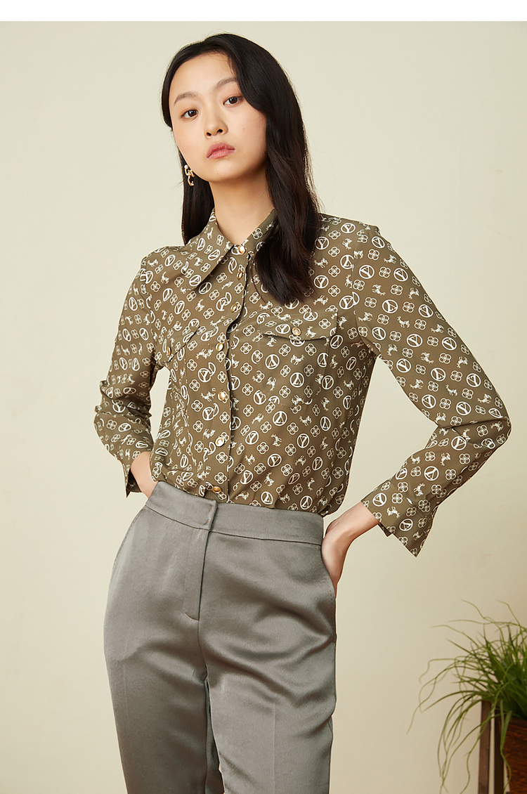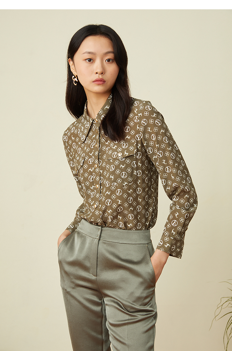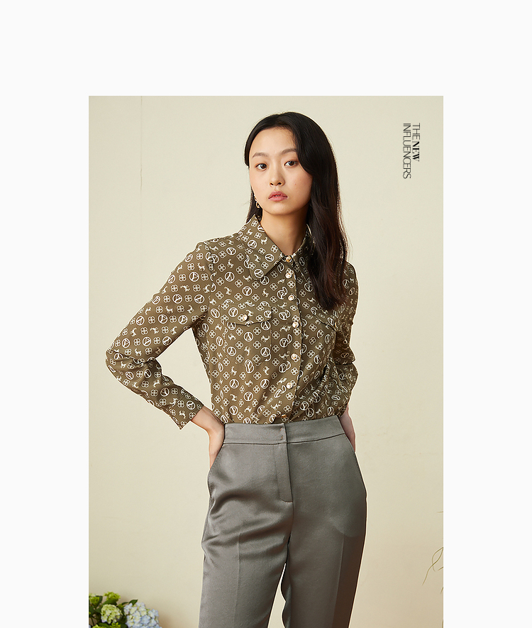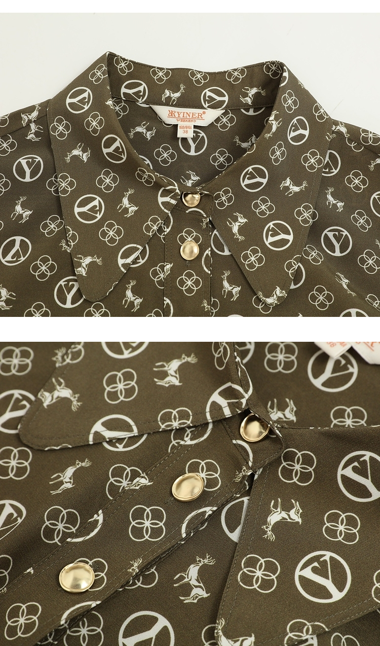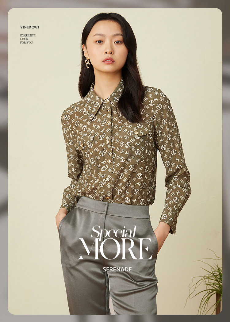 YINER音儿2022春季新款印花POLO领桑蚕丝衬衫8c32130110