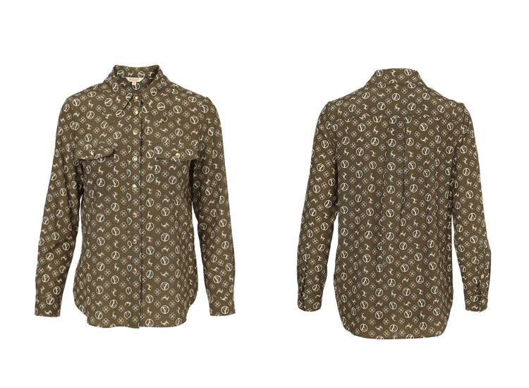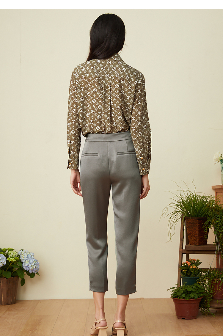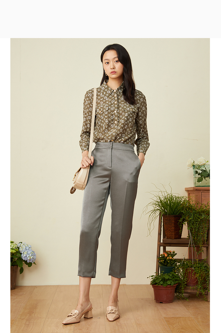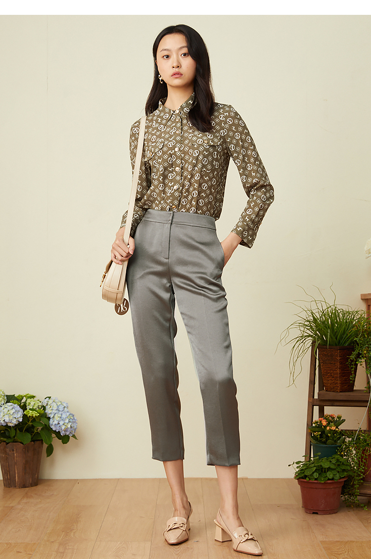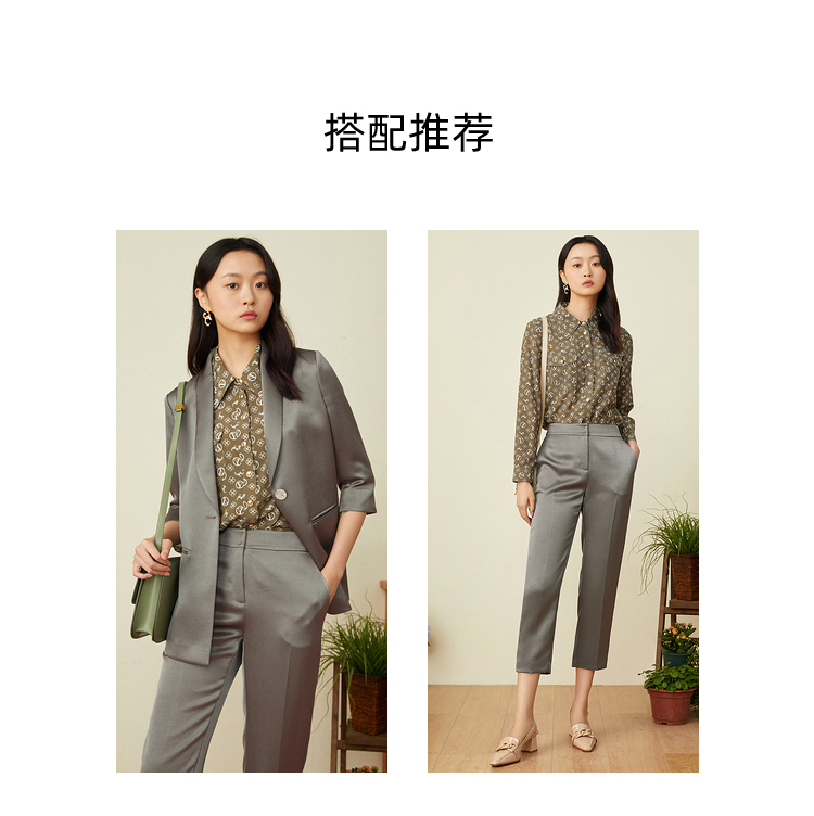 YINER音儿2022春季新款印花POLO领桑蚕丝衬衫8c32130110