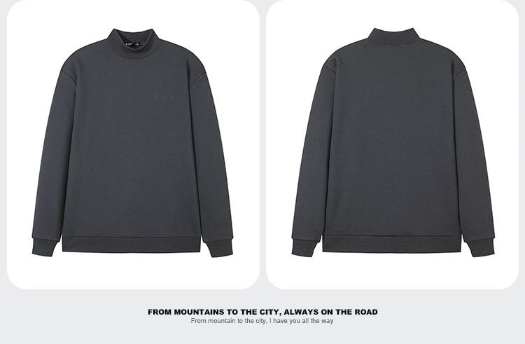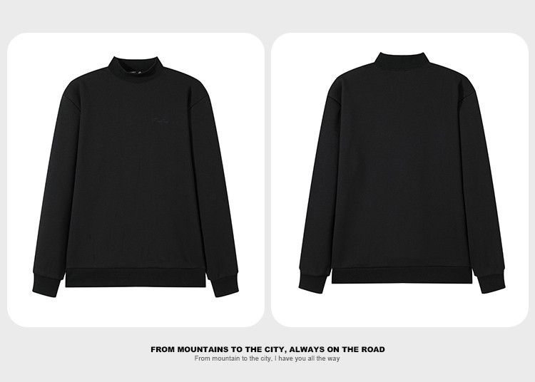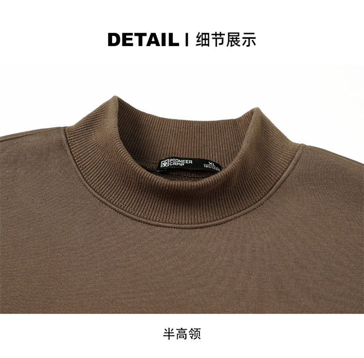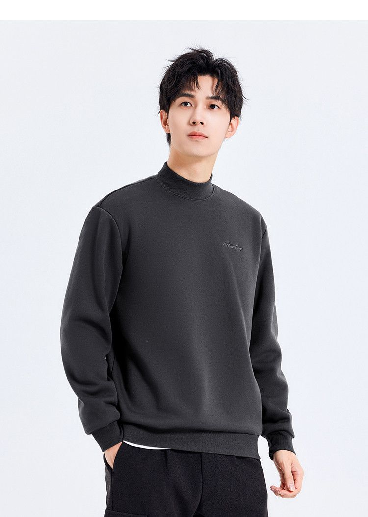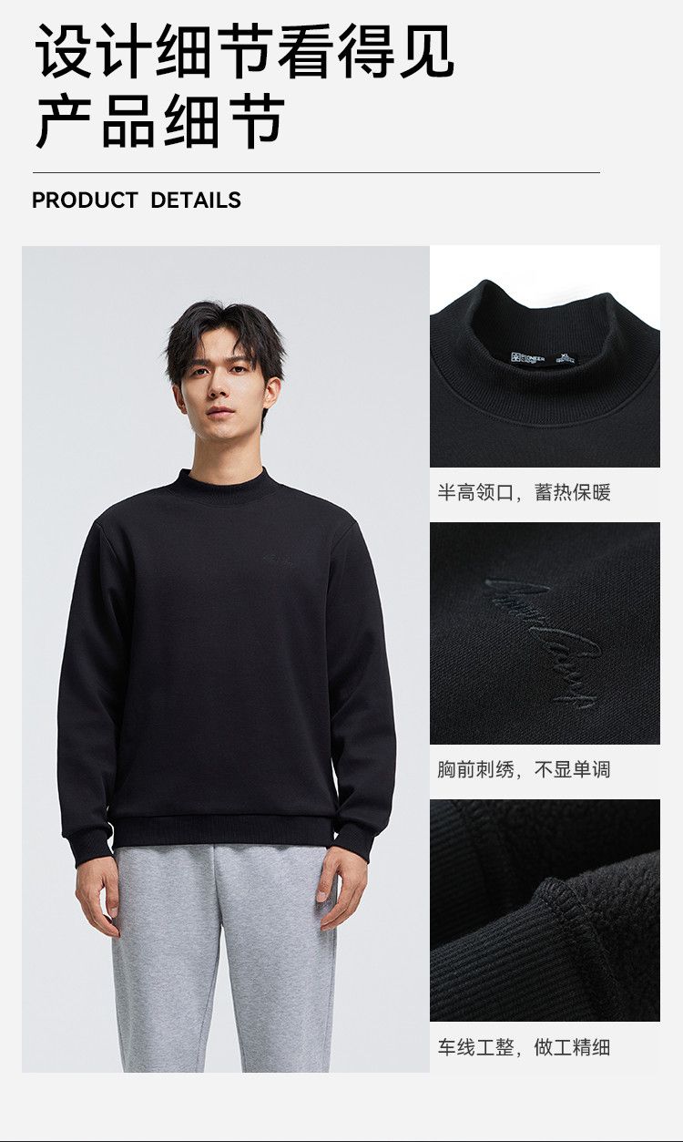拓路者加绒半高领男式卫衣24年冬季绣花简约套头加厚长袖上衣外套