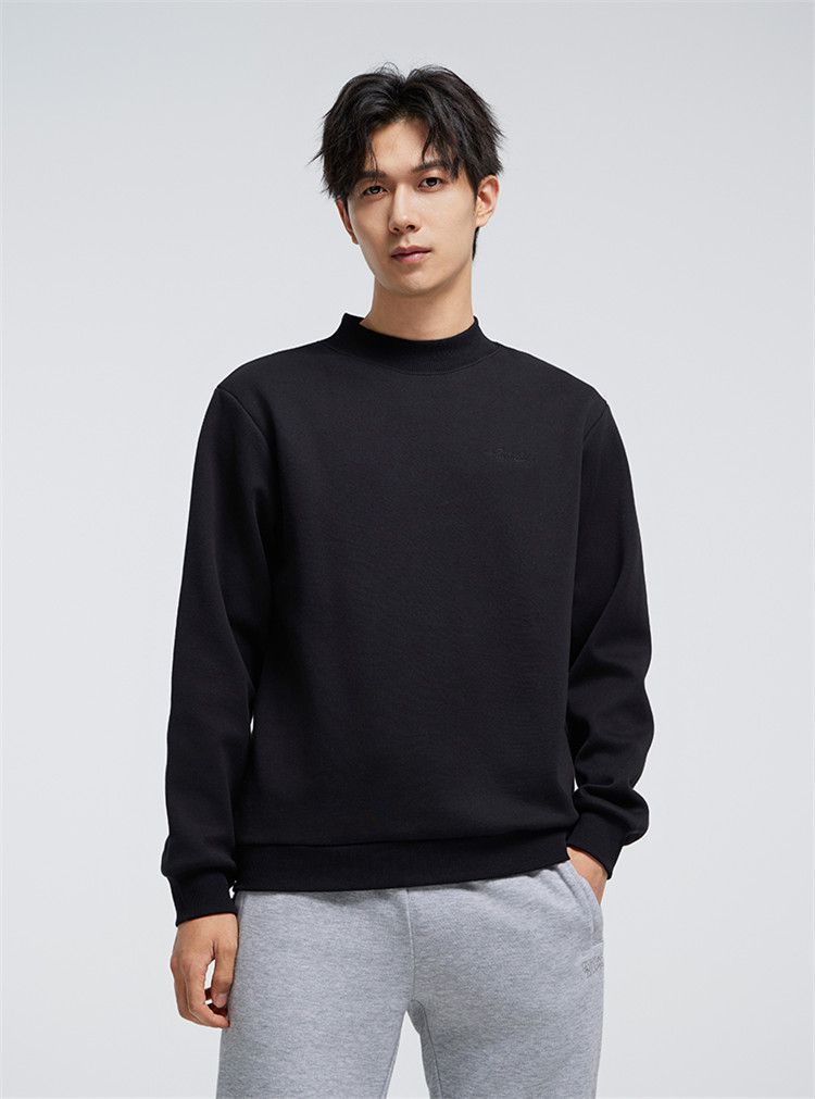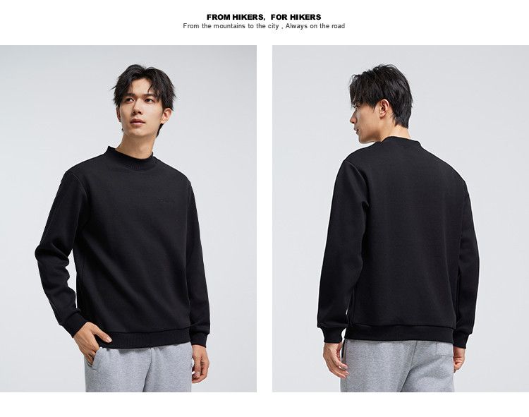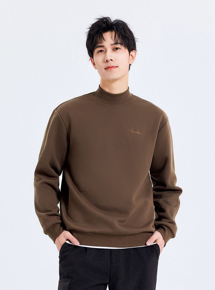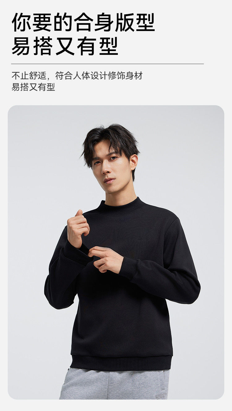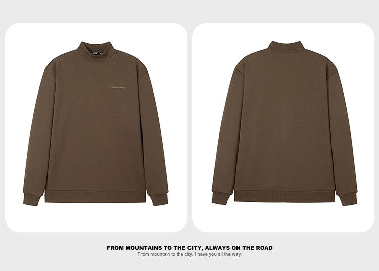拓路者加绒半高领男式卫衣24年冬季绣花简约套头加厚长袖上衣外套