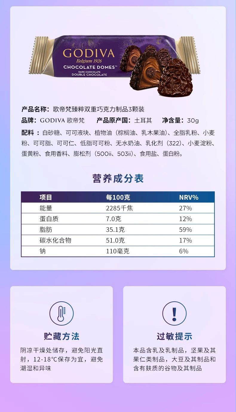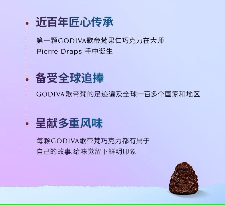 【品名】GODIVA/歌帝梵 臻粹系列榛子巧克力30g*3粒/包