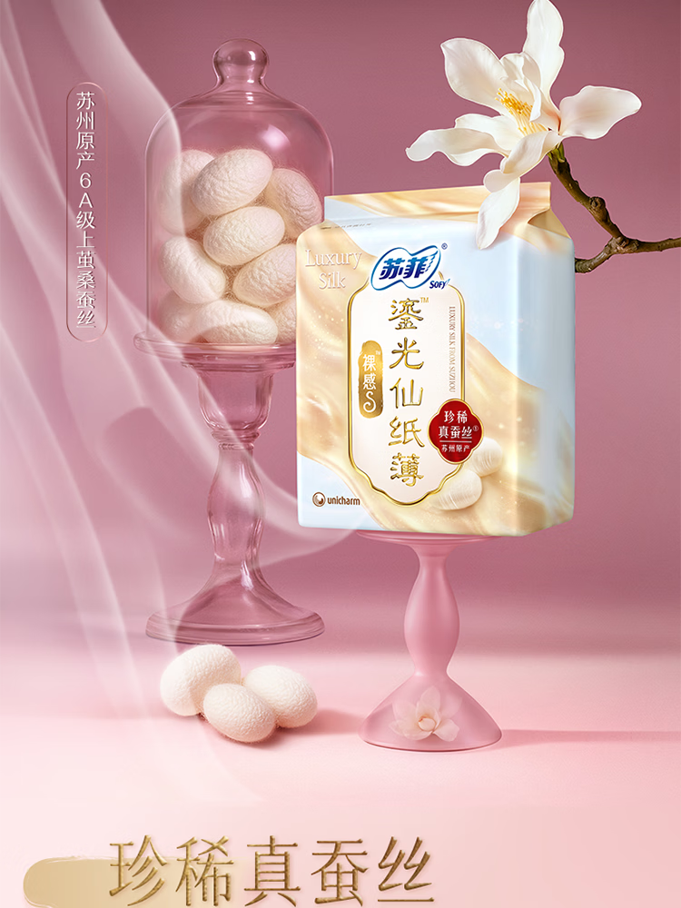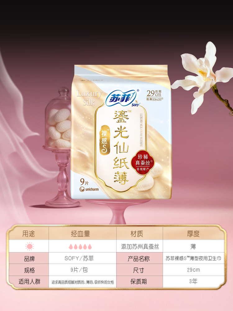 苏菲裸感S鎏光仙纸薄系列夜用卫生巾290mm 9片