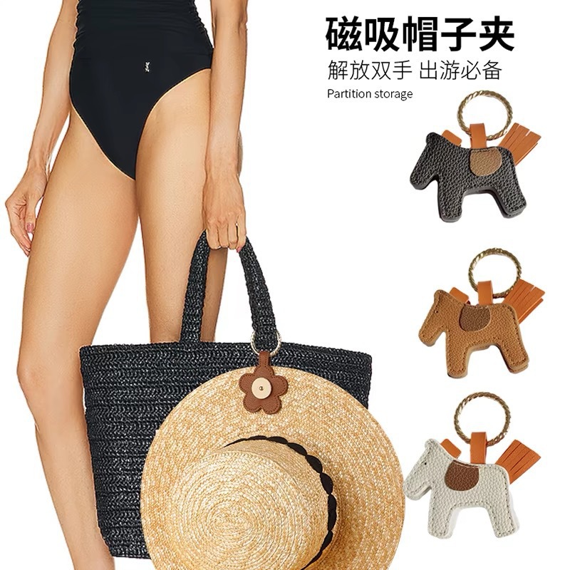 PU皮革磁吸帽夹旅 行防嗮外出太阳帽草磁性帽夹子 便携收纳
