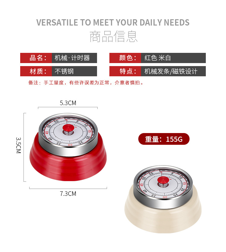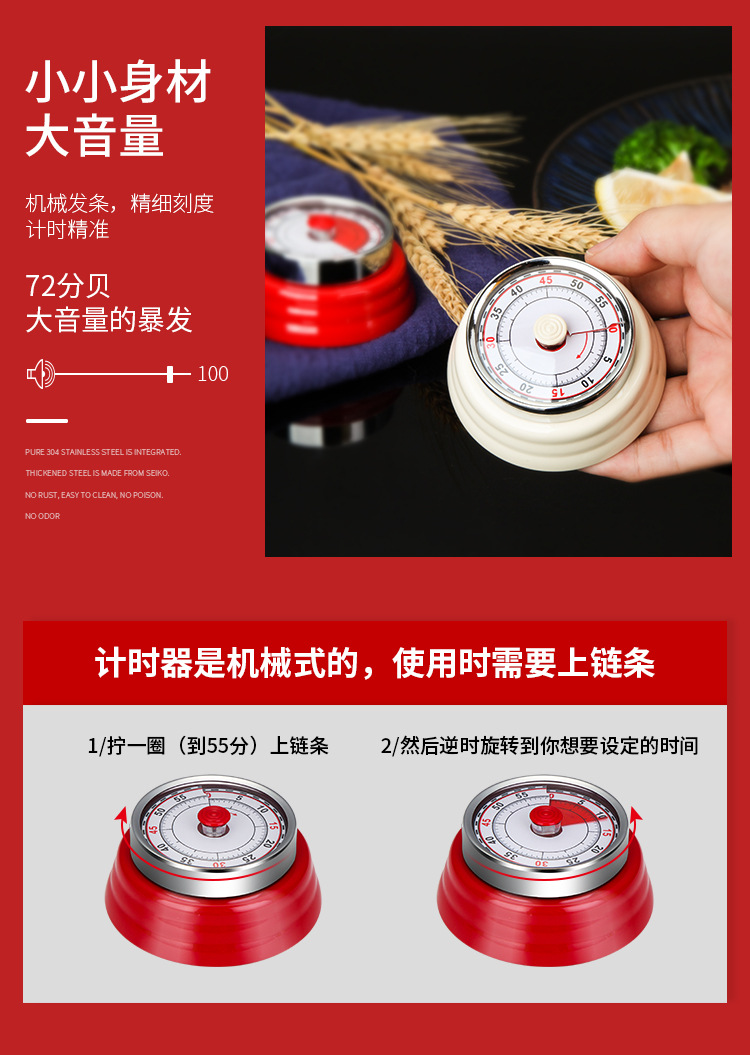 【跨境出口德国计时器】外贸不锈钢机械计时器厨房可视化定时器学生时间管理倒计时提醒器