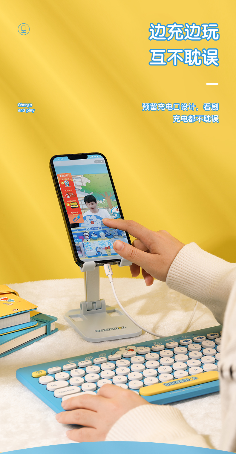 洛克 ROCK 哆啦A梦 桌面折叠手机支架 蓝色(有公仔)