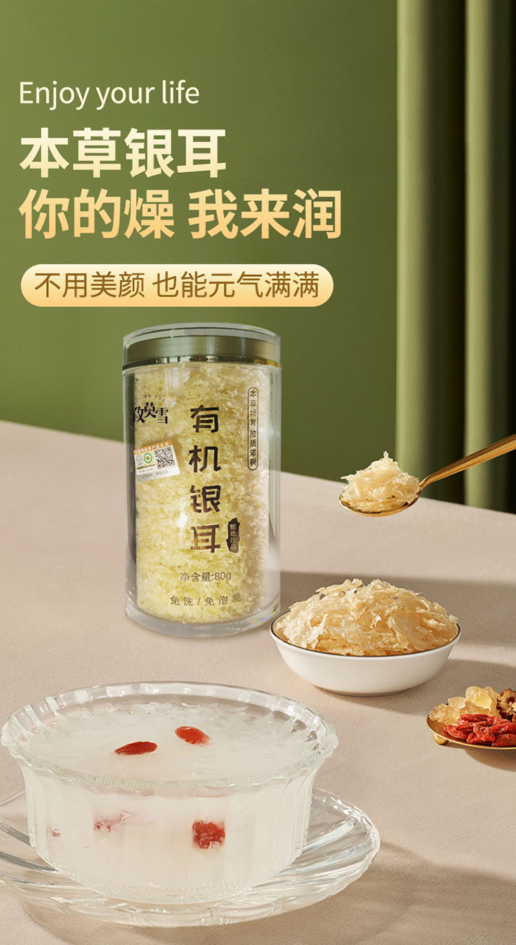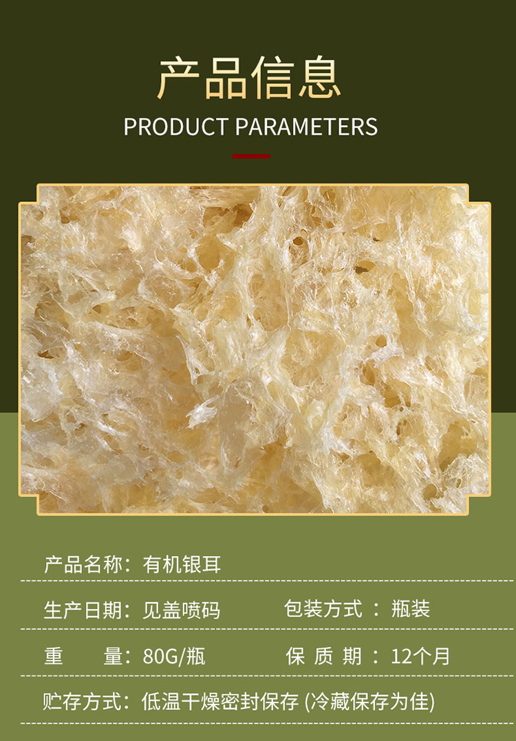 孜莫雪有机银耳 (免洗免泡发)80克/瓶