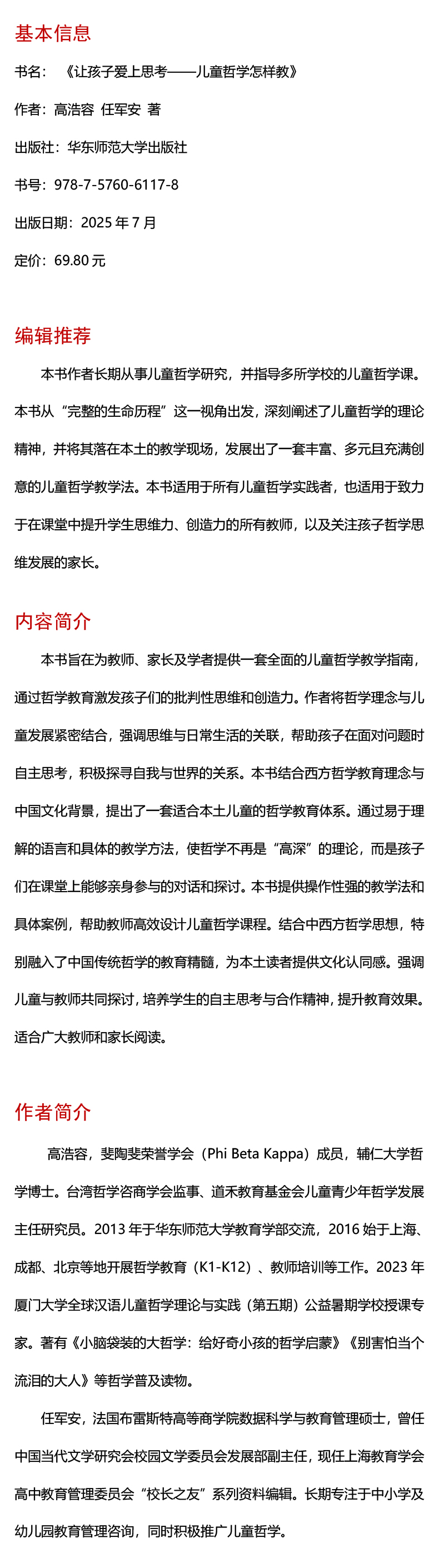 让孩子爱上思考 儿童哲学怎样教 大夏书系 教育艺术 哲学思维发展