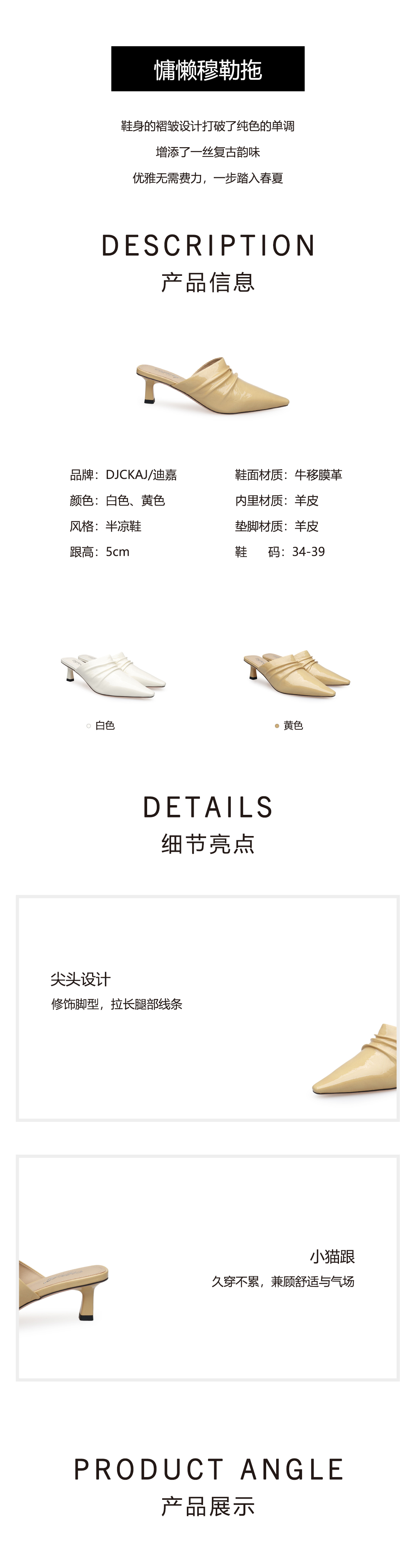 豪麟名鞋迪嘉女鞋穆勒鞋牛移膜革DJYYA61WB004白色