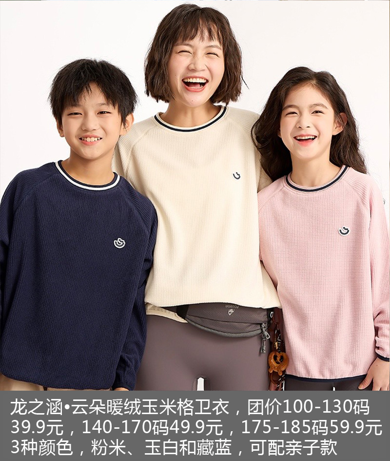 【福利社专属】龙之涵秋冬新品云朵暖绒玉米格卫衣