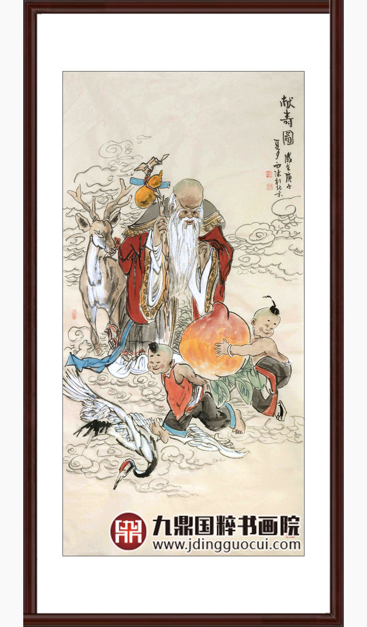 杨西沐《献寿图》68*138cm 人物竖幅作品 茶室/客厅挂画