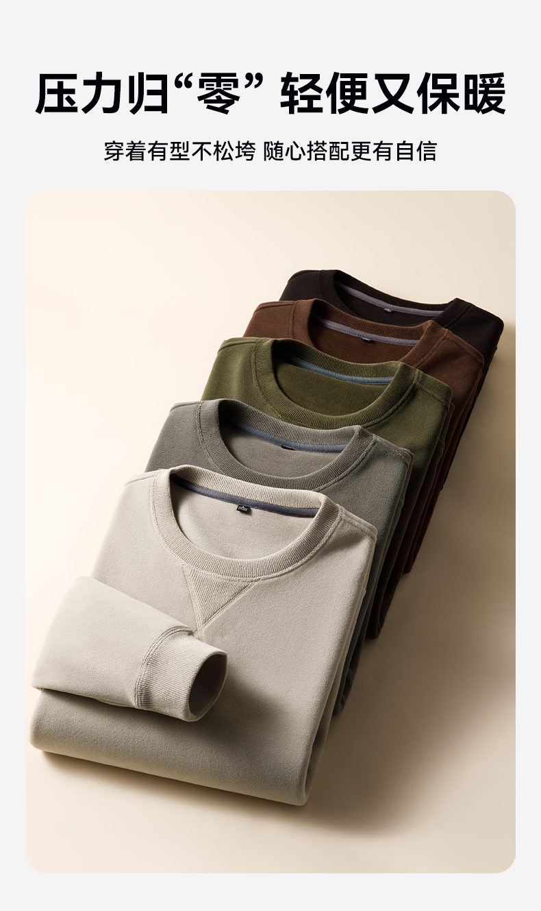 半身缘男装 春秋绵羊毛奥粒绒圆领合身卫衣PY41