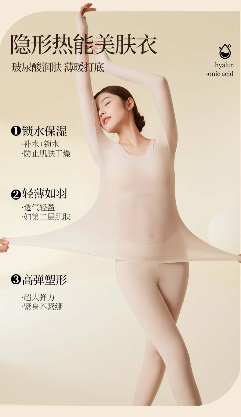 【全新升级!裸感&速热!】玻尿酸无痕肌底美肤衣超薄保暖内衣 女秋冬季高弹修身秋衣秋裤套装