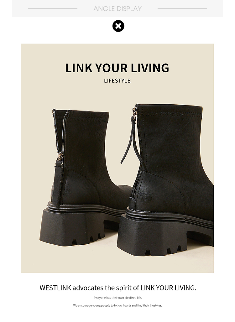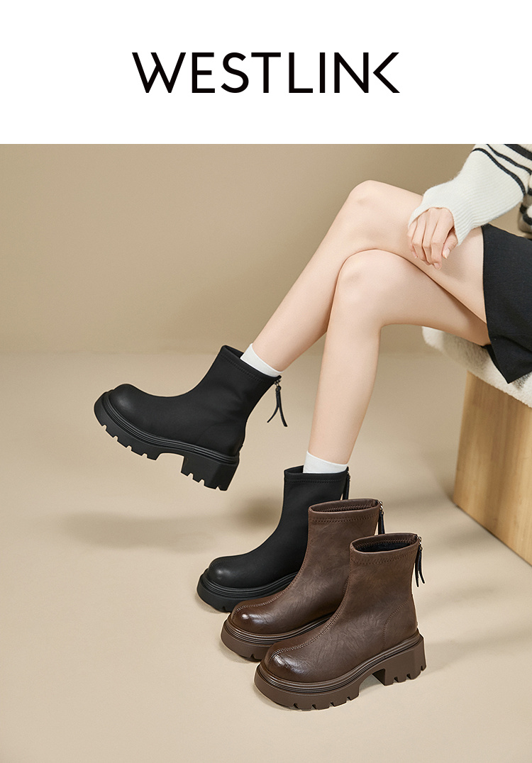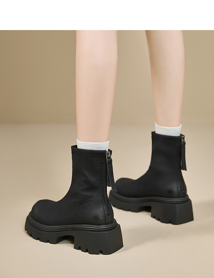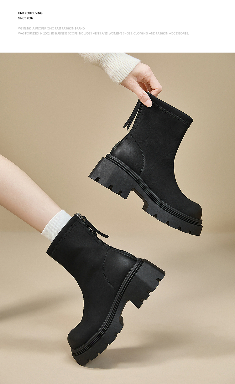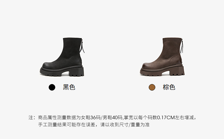西遇厚底瘦瘦靴女新款秋冬复古小个子增高马丁靴黑色圆头短靴V2257272