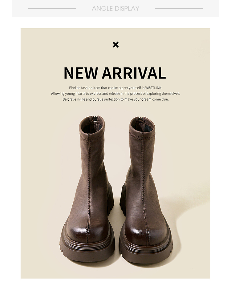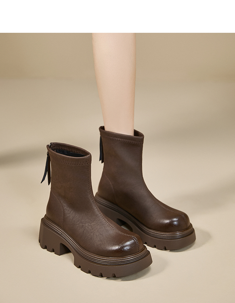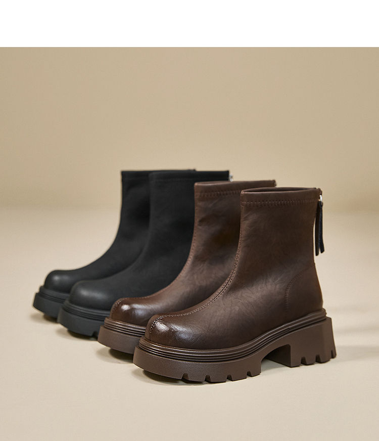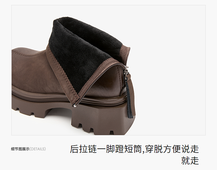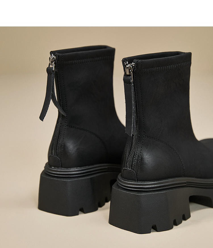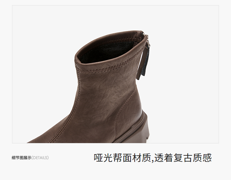 西遇厚底瘦瘦靴女新款秋冬复古小个子增高马丁靴黑色圆头短靴V2257272