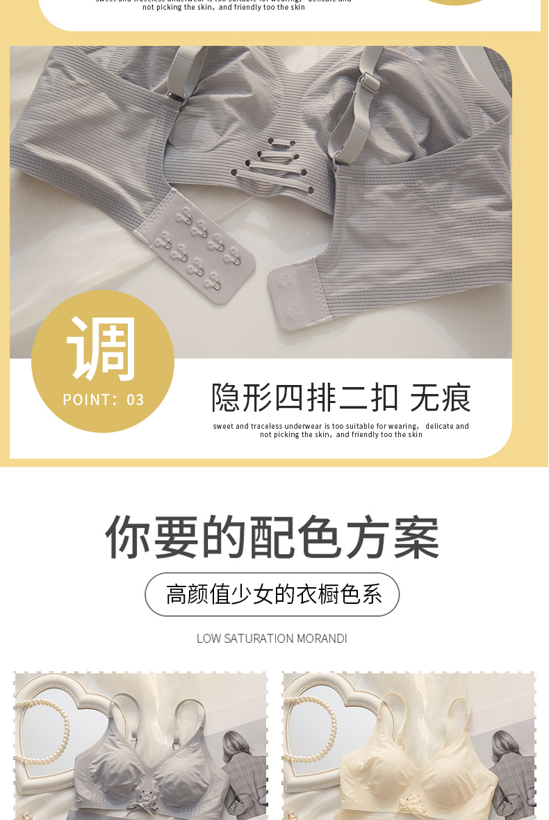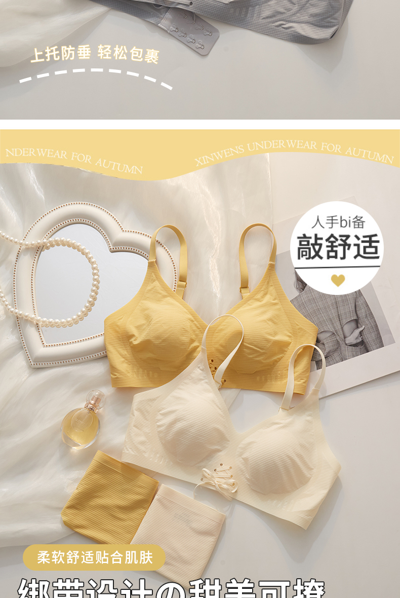 黛唯梵芭蕾女孩+花瓣物语【两件装薄款内衣】薄款内衣女大胸显小胸聚拢 舒适无钢圈收副乳防下垂文胸 选自高品质面料,穿着舒适贴身,清凉一夏冰丝裸感,打造诱人曲线!