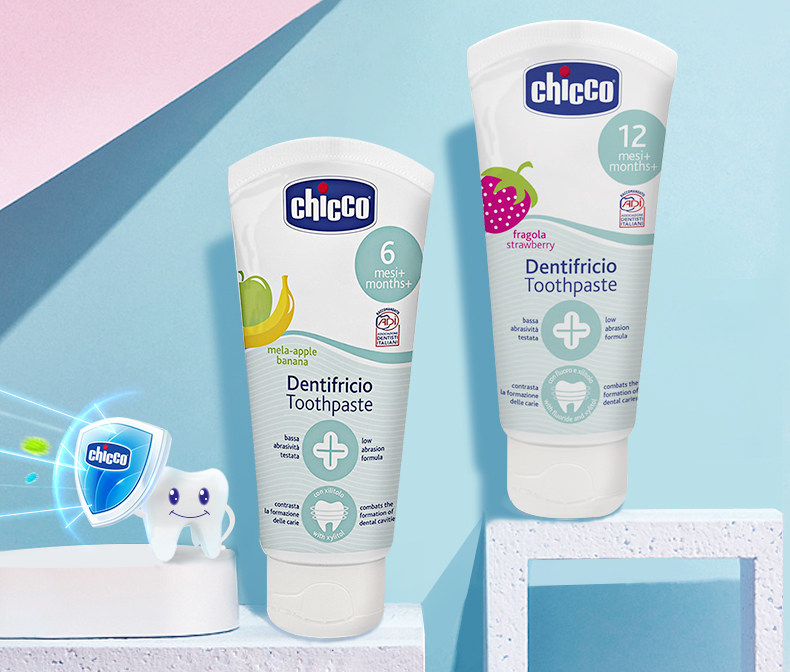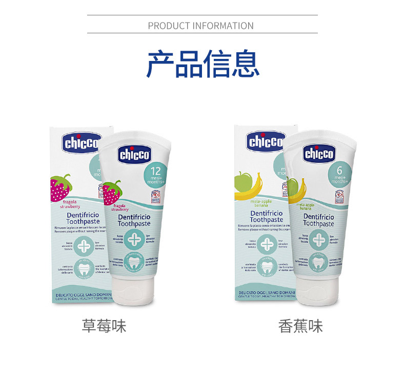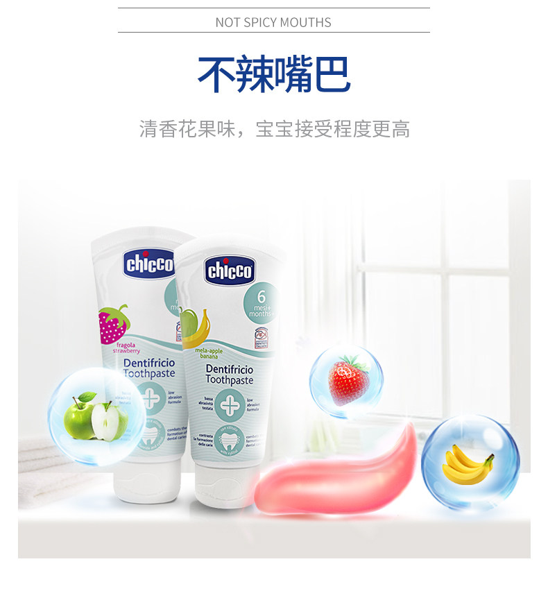 意大利chicco智高安全可吞咽婴儿牙膏无氟水果味0-1-3岁