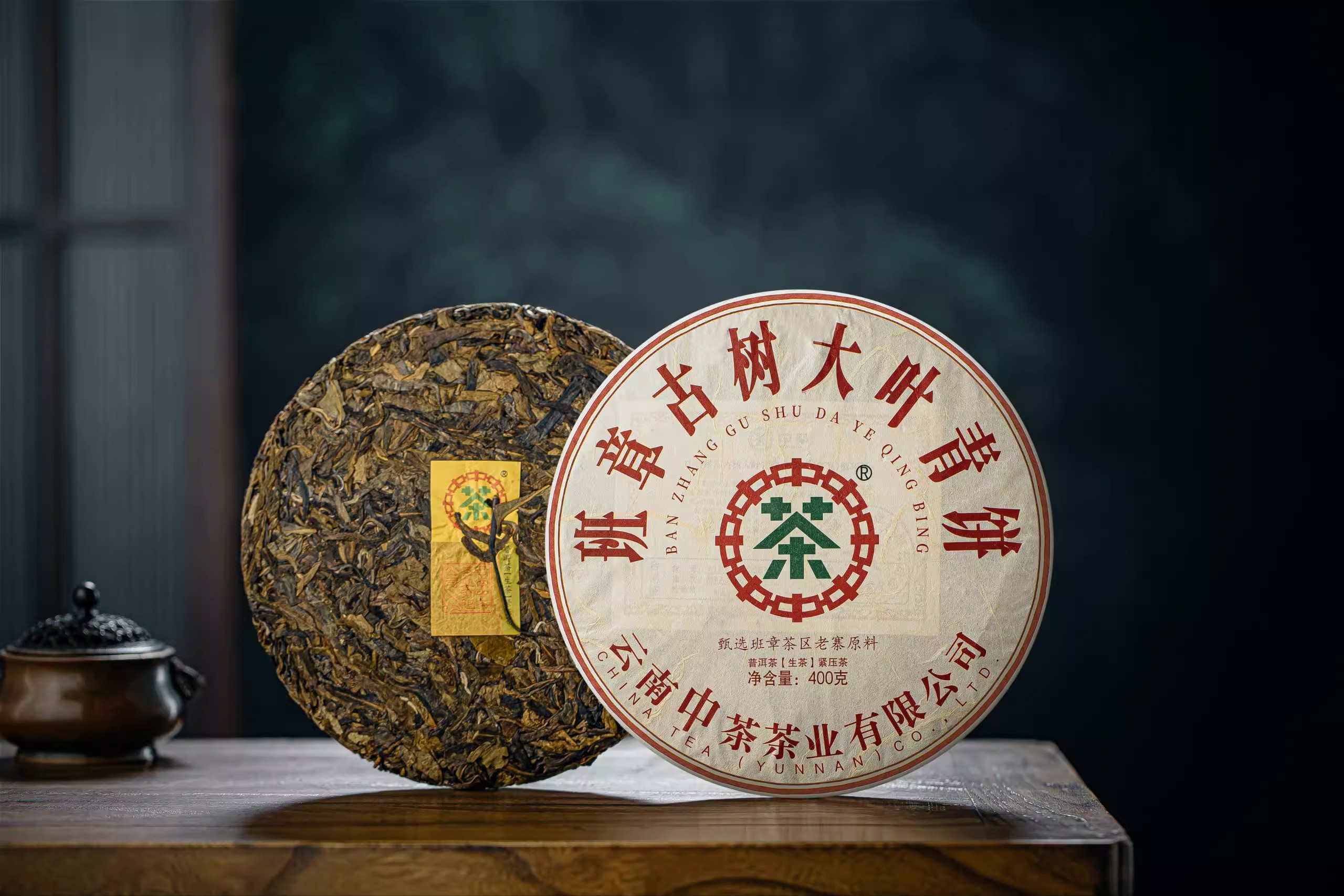 中粮-中茶2024年中茶班章古树大叶青饼生茶400克/云南干仓直发