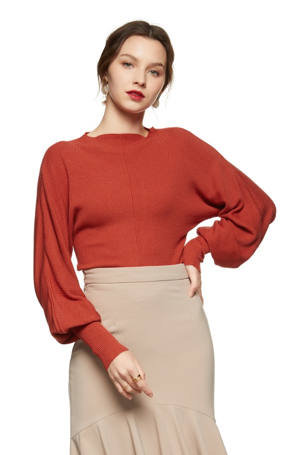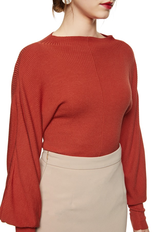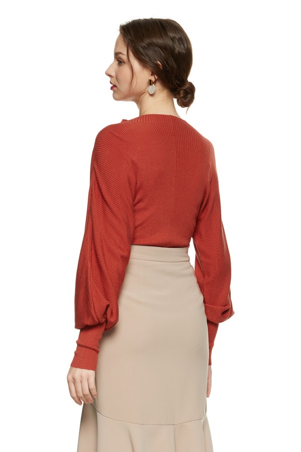 LNNNS 砖红色羊腿袖上衣 8766