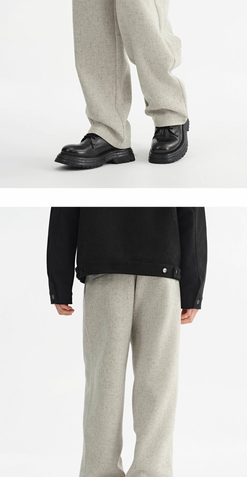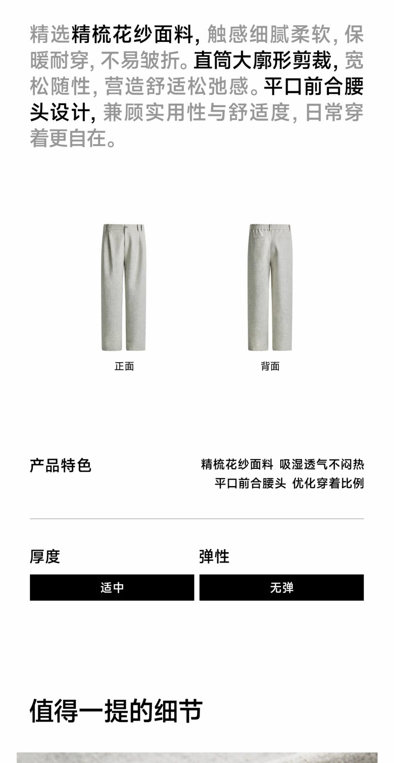CHINISM折扣季 花灰色长裤男冬季美式松紧腰直筒休闲裤男士裤子 商品图2