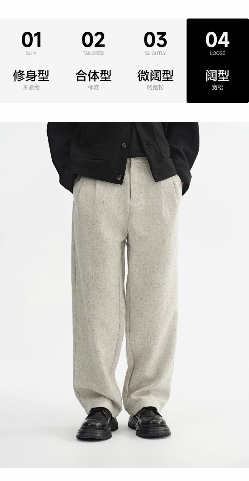 CHINISM折扣季 花灰色长裤男冬季美式松紧腰直筒休闲裤男士裤子 商品图4