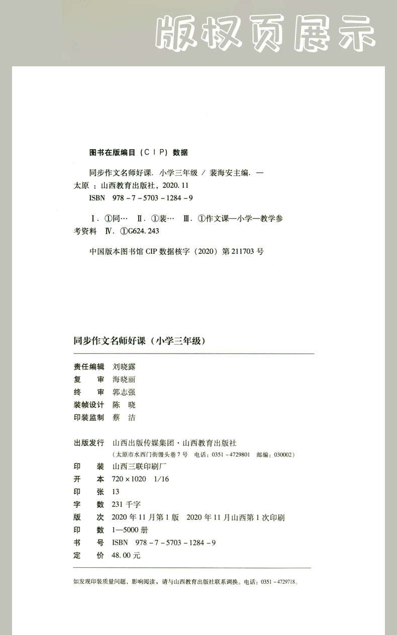 正版同步作文 名师好课 小学三年级 教学参考资料 主编 裴海安 山西教育出版社出版