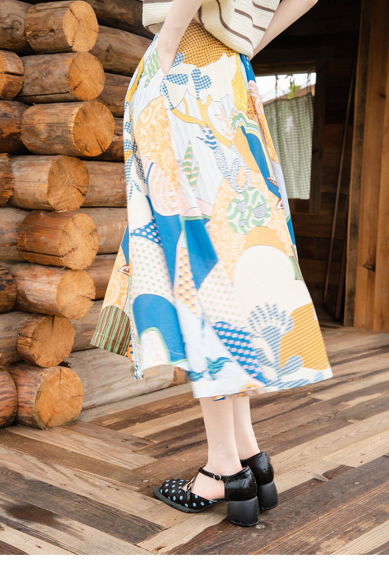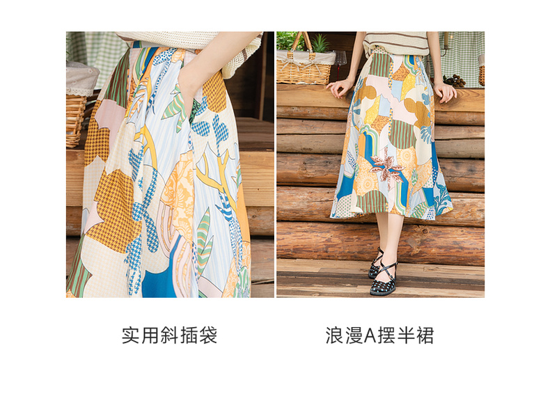 谜底花色半身裙2025秋季新款度假风抽象印花中长款半裙257MB7753