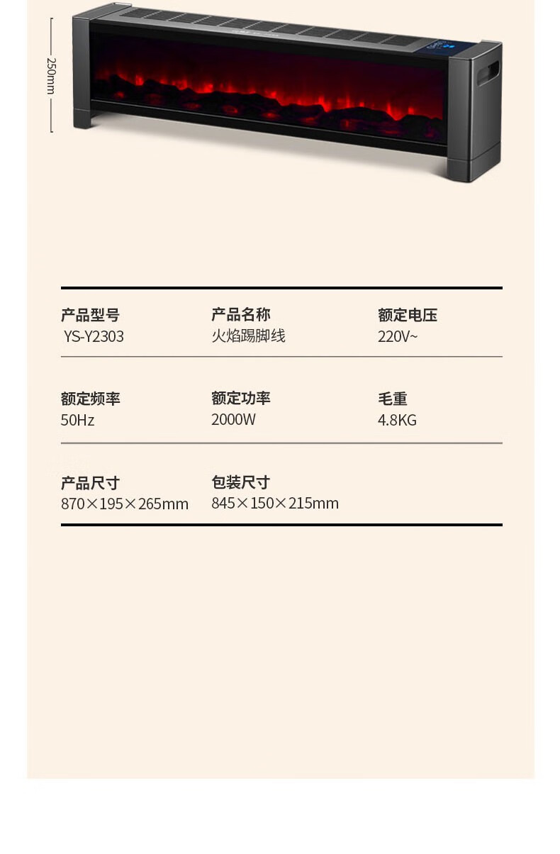 【小家电】扬子踢脚线取暖器家用石墨烯电暖器YS-Y2303HF