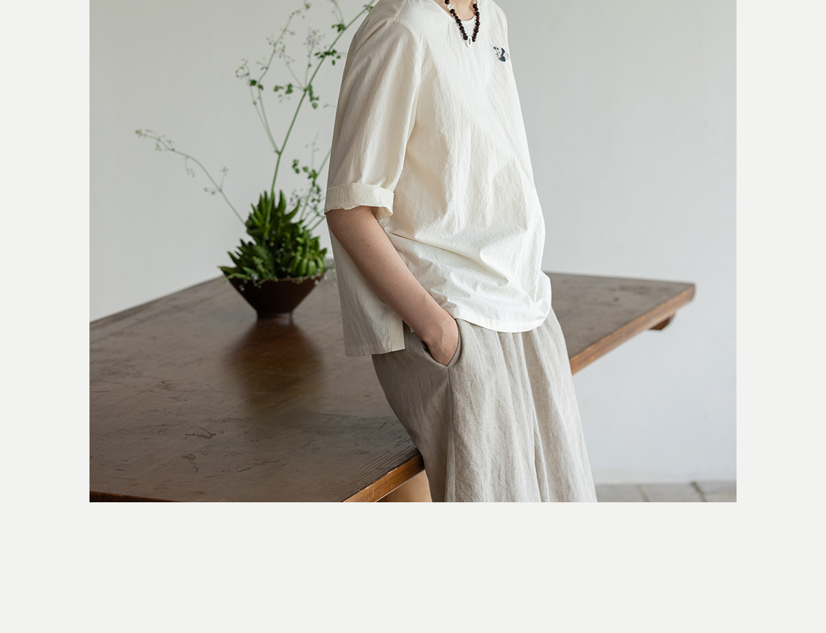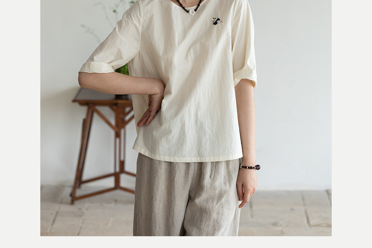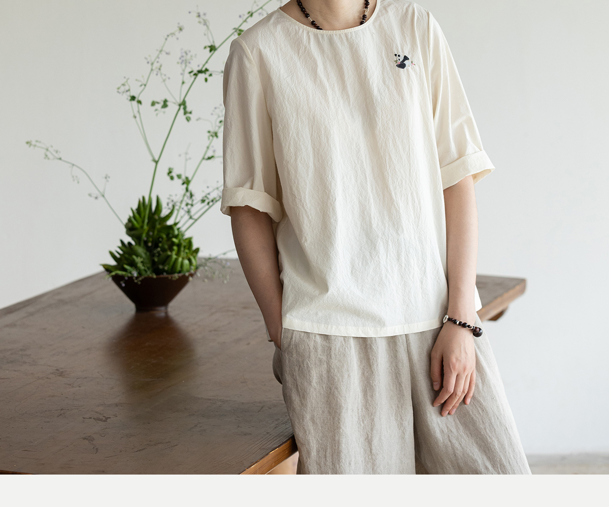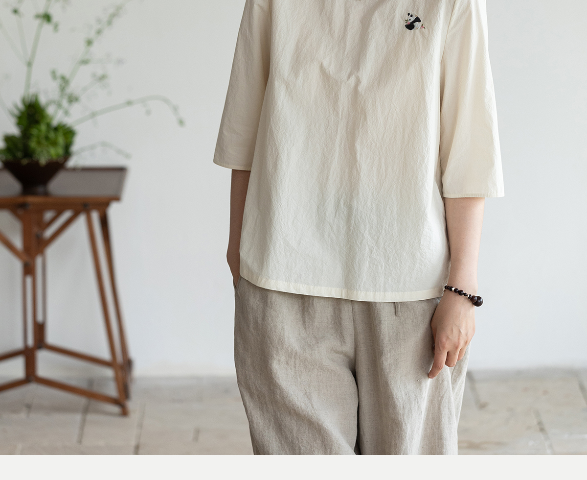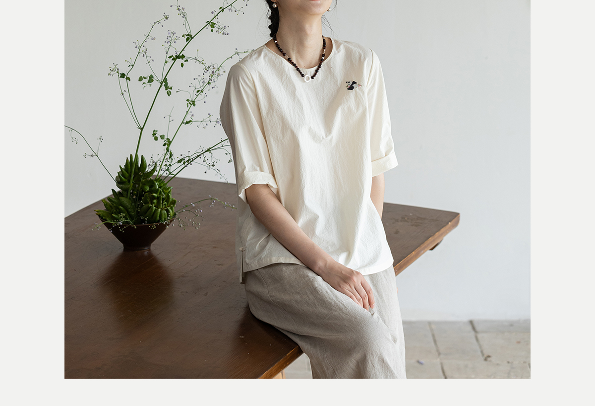 牧衣游原创 汉麻棉手工刺绣套头衫质朴简约东方白色圆领上衣 枝己