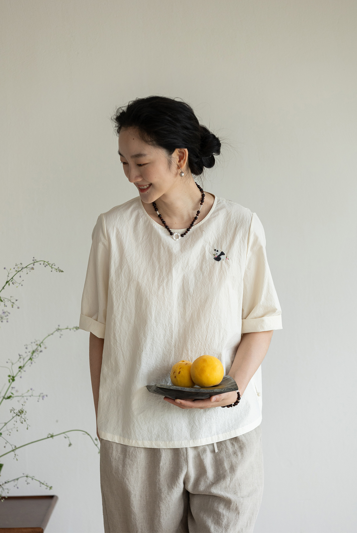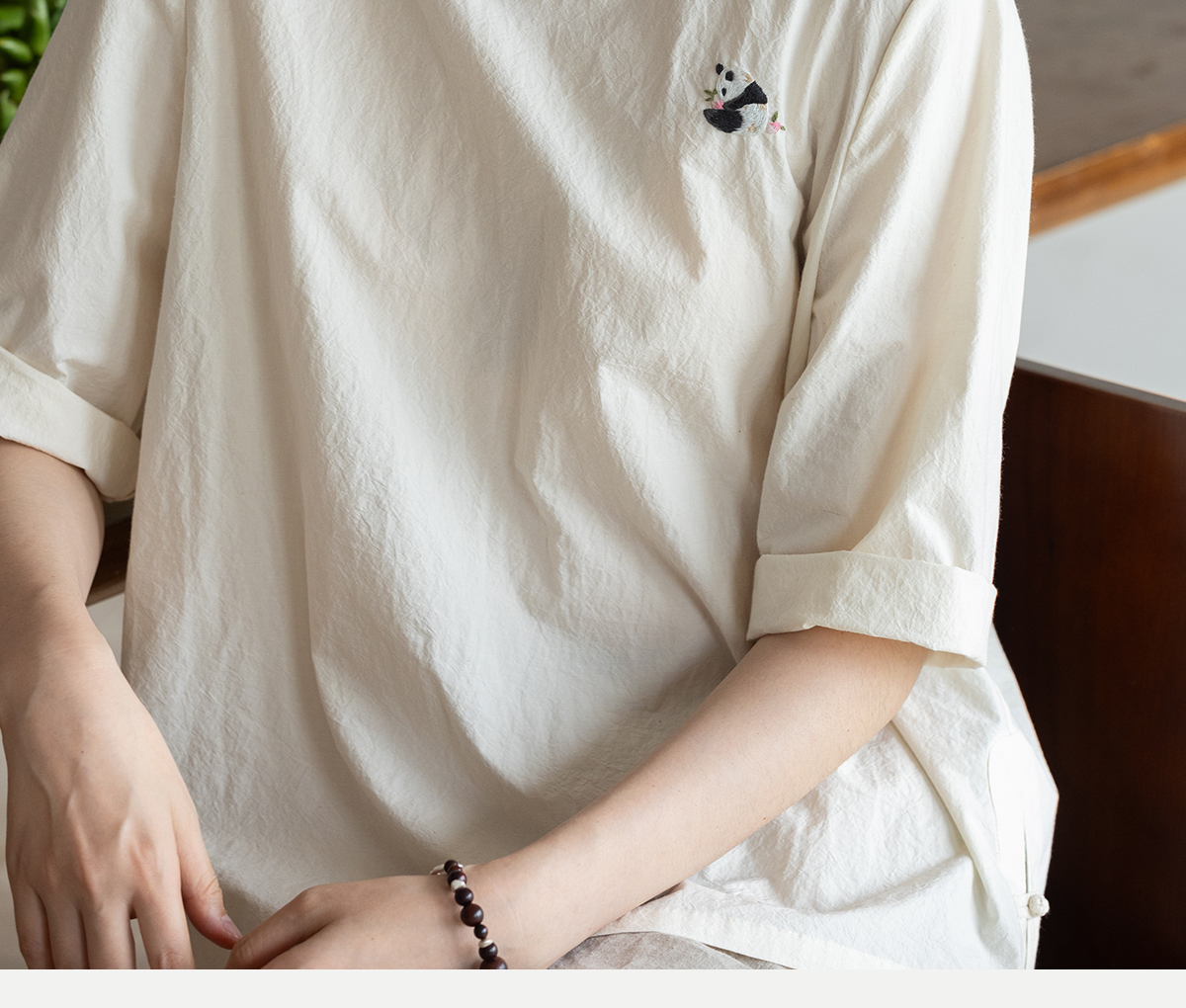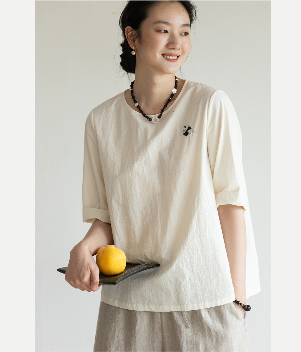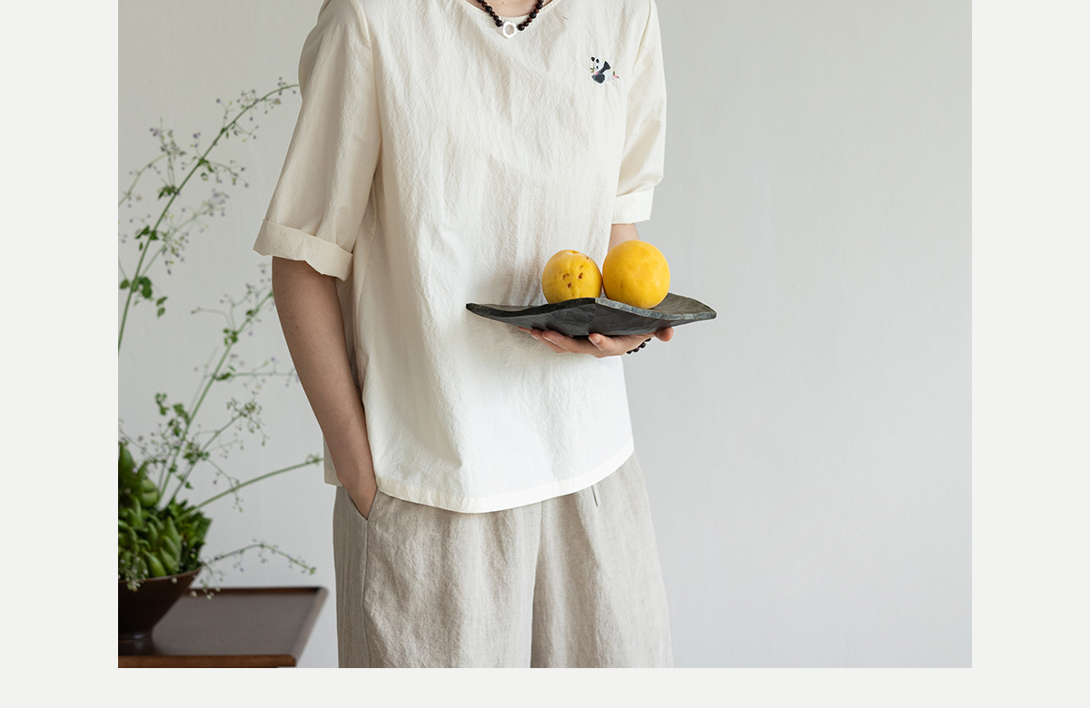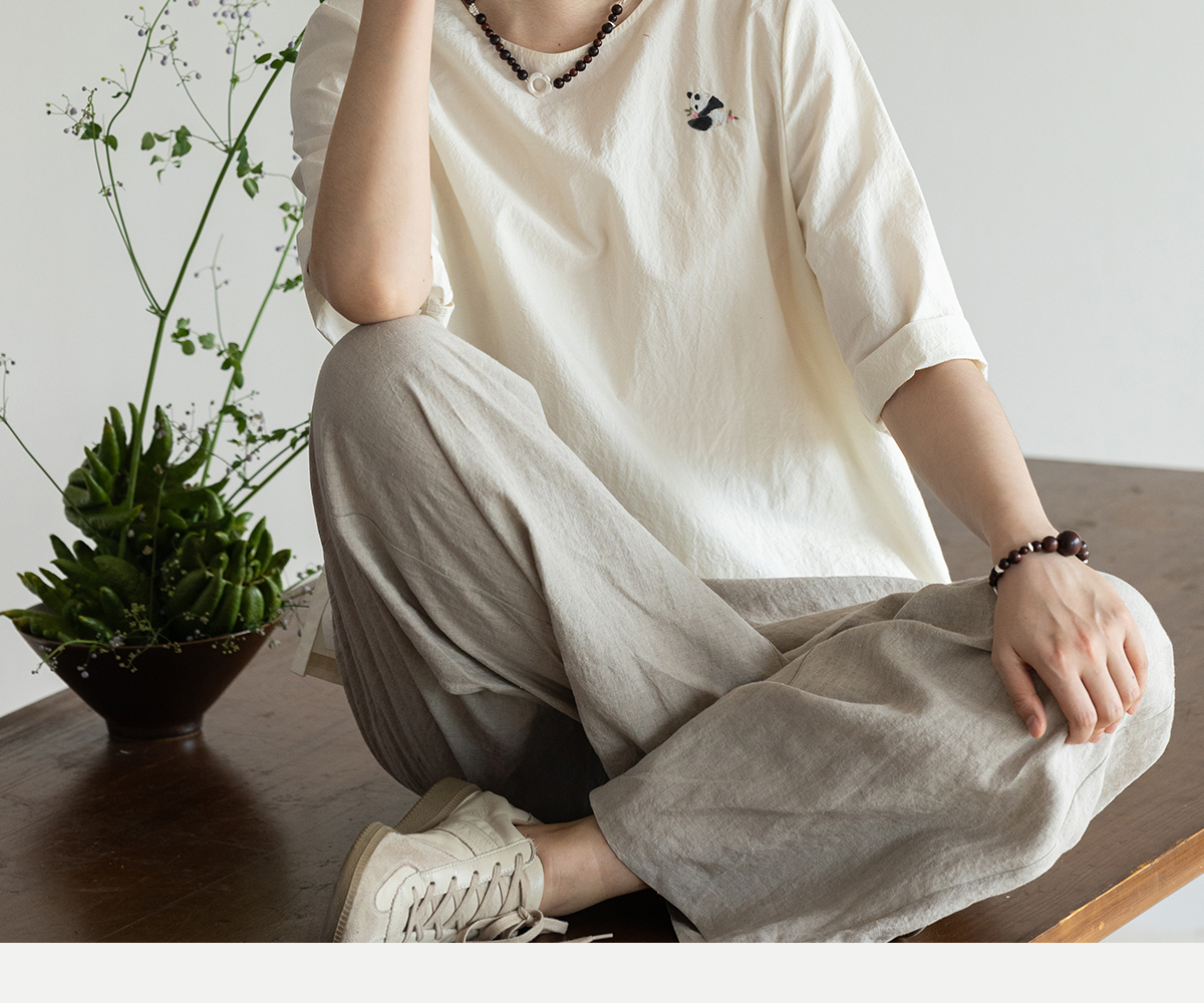 牧衣游原创 汉麻棉手工刺绣套头衫质朴简约东方白色圆领上衣 枝己