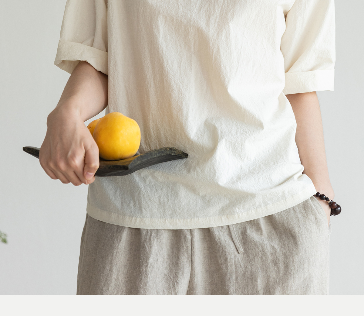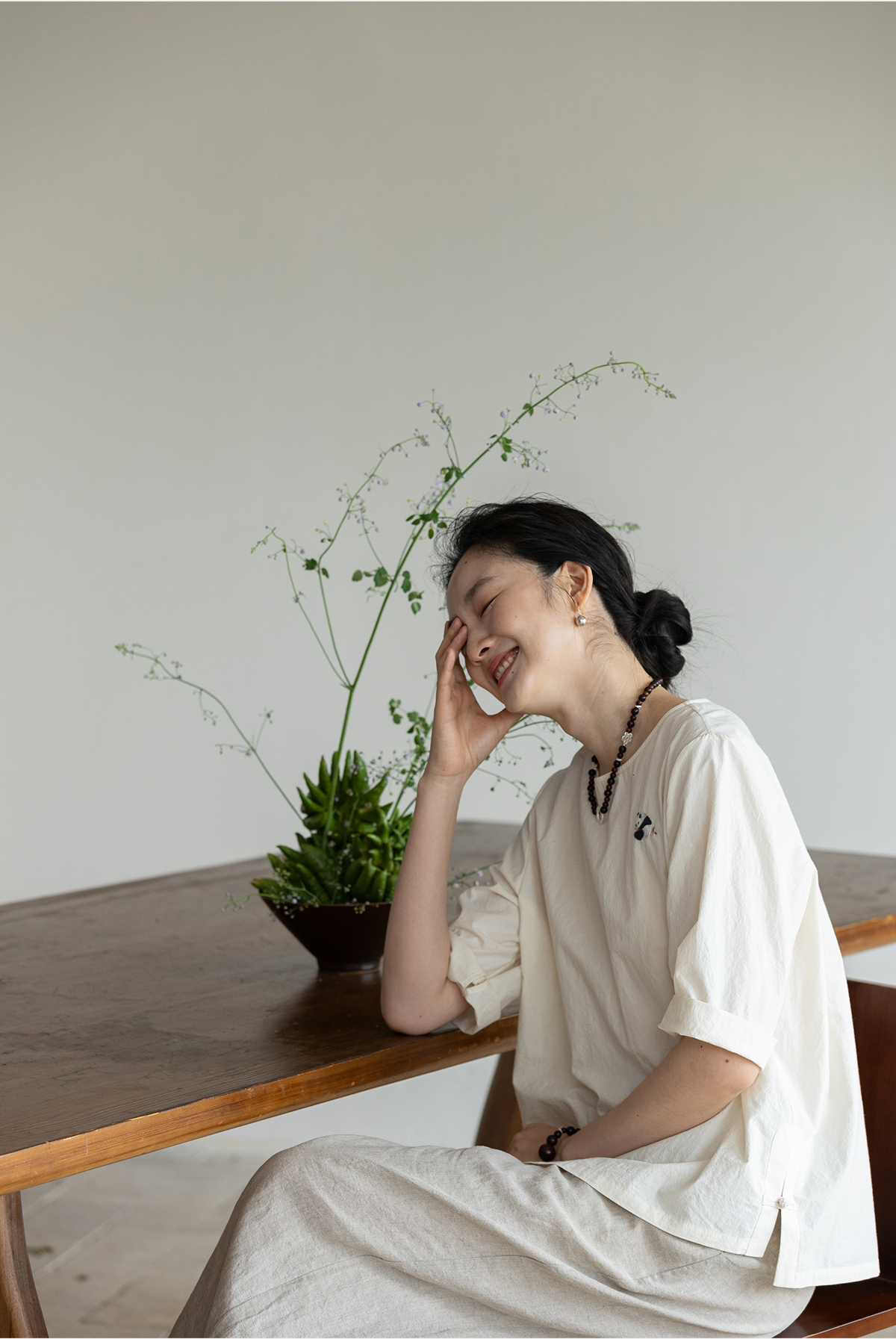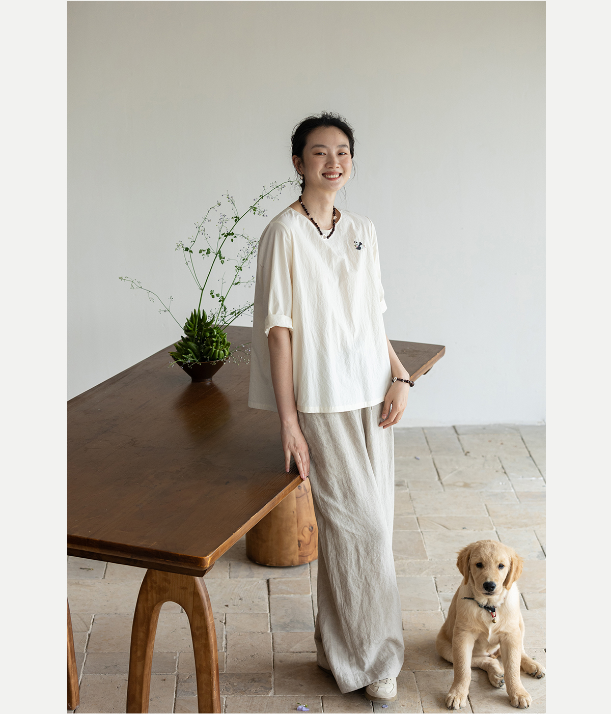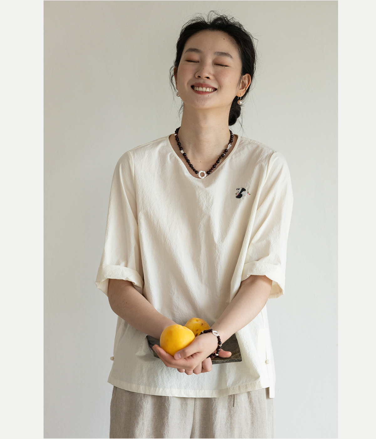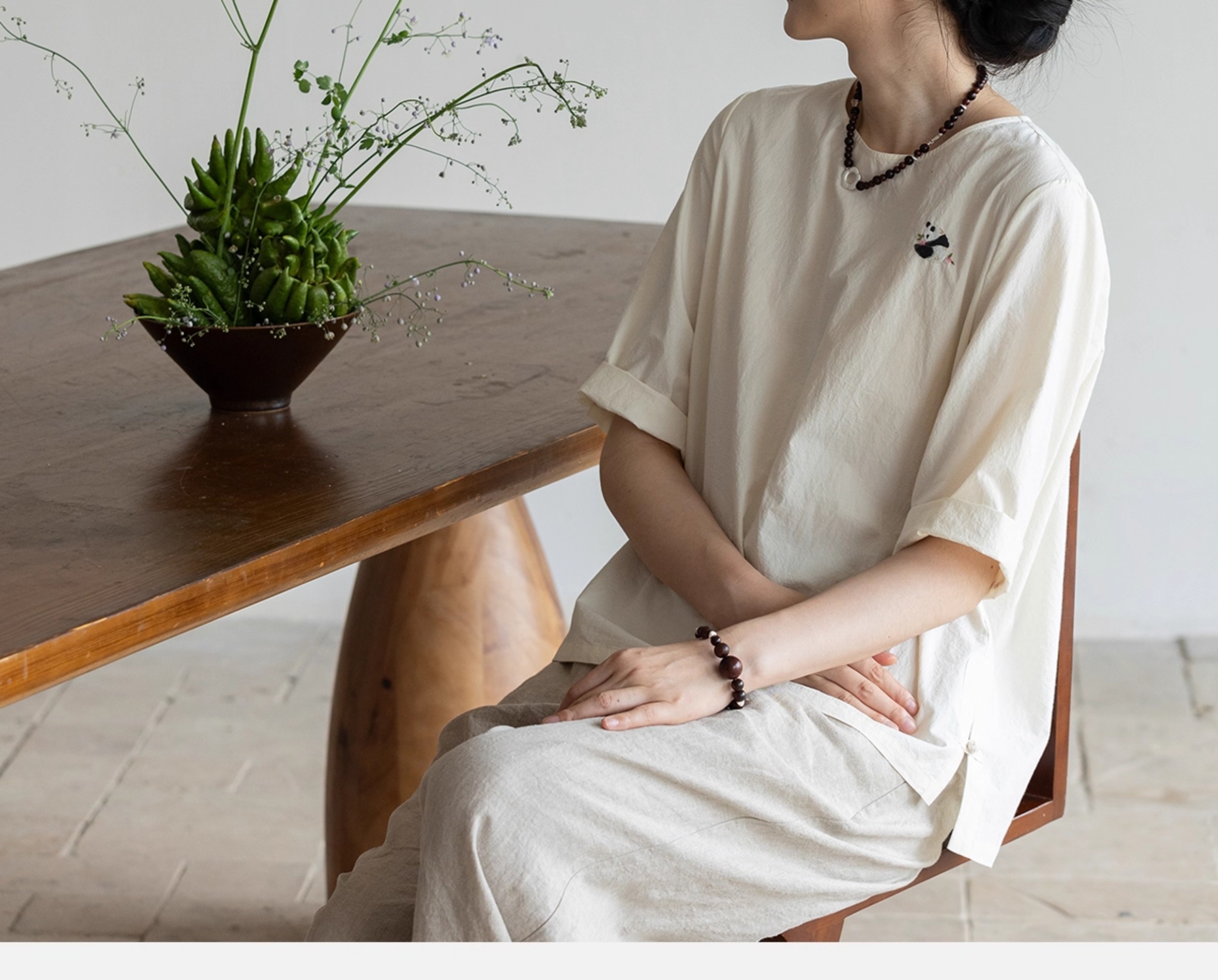 牧衣游原创 汉麻棉手工刺绣套头衫质朴简约东方白色圆领上衣 枝己